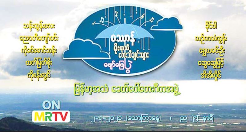 ဝဿာန်မိုးရာသီ တေးသီချင်းများ ဖျော်ဖြေပွဲ၏ ပွဲစဉ်(၅)ကို ဇူလိုင် ၂ ရက် ည ၈ နာရီ သတင်းအပြီးတွင် မြန်မာ့အသံနှင့် ရုပ်မြင်သံကြား၌ ထုတ်လွှင့်ပြသမည်ဖြစ်သည်။