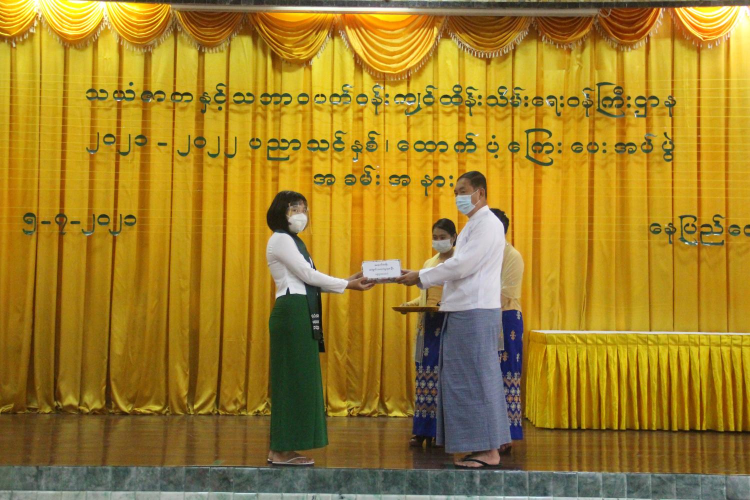 သယံဇာတနှင့် သဘာဝပတ်ဝန်းကျင် ထိန်းသိမ်းရေးဝန်ကြီးဌာန ၂၀၂၁-၂၀၂၂ ပညာသင်နှစ် ပညာသင် ထောက်ပံ့ကြေးပေးအပ်ပွဲ အခမ်းအနားကို ယနေ့နံနက် ၉ နာရီခွဲတွင် နေပြည်တော် ရုံးအမှတ် (၁၉) သီရိရတနာခန်းမ၌ ကိုဗစ်-၁၉ ကာကွယ်၊ ထိန်းချုပ်၊ ကုသရေး ဗဟိုကော်မတီ၏ လမ်းညွှန်ချက်၊ စည်းမျဉ်းစည်းကမ်းများနှင့်အညီ ကျင်းပသည်။