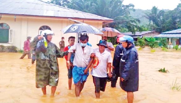 ကော့သောင်းမြို့၌ ရေကြီးရေလျှံဖြစ်ပေါ်ခဲ့သည့် နေရာများသို့ နယ်မြေခံတပ်မတော်သားများက ကူညီကယ်ဆယ်ရေးလုပ်ငန်းများ ဆောင်ရွက်