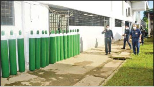 ရန်ကုန်မြို့တော် စည်ပင်သာယာရေးကော်မတီဥက္ကဋ္ဌ (မြို့တော်ဝန်) ဦးဗိုလ်ဌေးသည် ယနေ့ နံနက် ၇ နာရီခွဲတွင် မရမ်းကုန်းမြို့နယ် မင်းဓမ္မလမ်းရှိ မြန်မာ ကွန်ဗင်းရှင်းစင်တာ (MCC)၌ ရန်ကုန်မြို့ ကိုဗစ်-၁၉ ရောဂါ ကုသရေးစင်တာများတွင် အောက်ဆီဂျင်အိုး များ လိုအပ်နေ မှုကြောင့် လီတာ ၄၀ အောက်ဆီဂျင် အိုးများ ဖြည့်တင်းပေးနိုင်ရေး ဆောင်ရွက်နေမှုကို ကြည့်ရှု စစ်ဆေးပြီး လိုအပ်သည်များ မှာကြား ဖြည့်ဆည်းဆောင်ရွက် ပေးသည်။