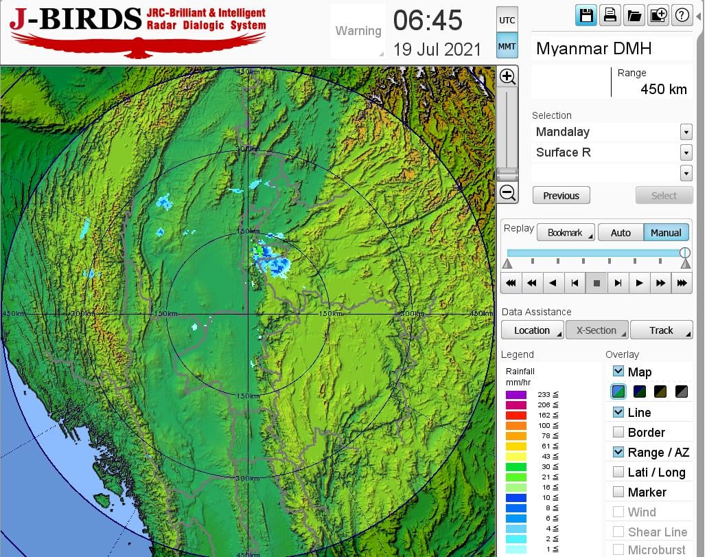 မန္တလေးမြို့နှင့်အနီးတစ်ဝိုက်အတွက်ယနေ့ညနေအထိခန့်မှန်းချက်။ နေရာကွက်ကျား မိုးထစ်ချုန်းရွာမည်။ရွာရန်ရာနှုန်းပြည့် ဖြစ်ပါသည်။