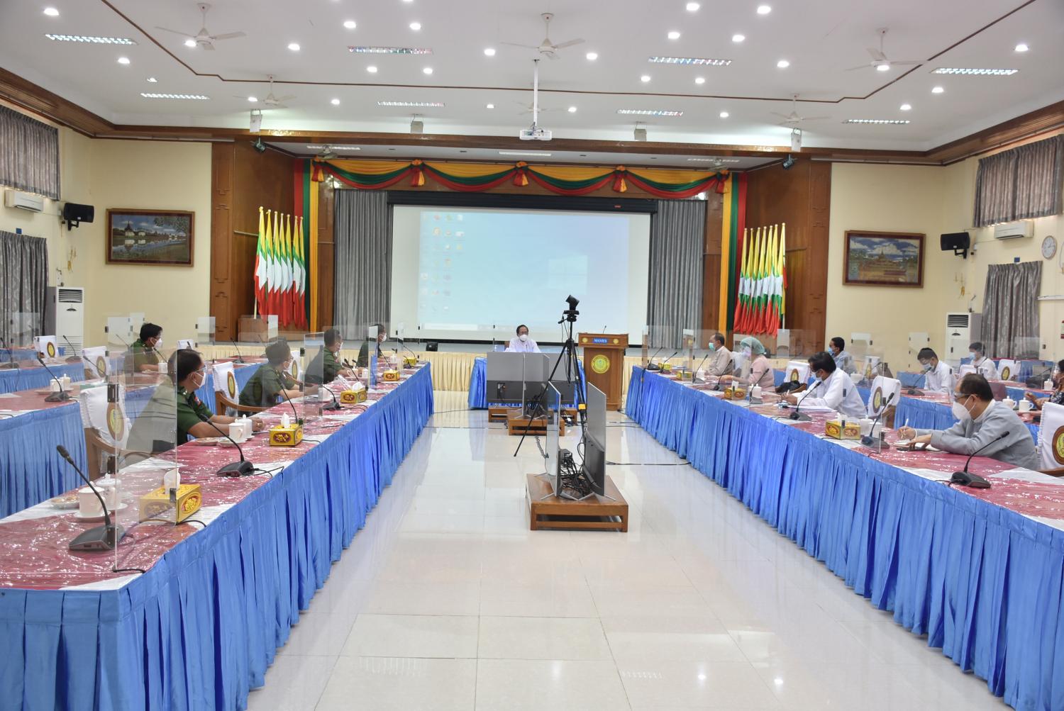 ကိုဗစ်-၁၉ ရောဂါ ကာကွယ်ဆေးထိုးခြင်းလုပ်ငန်း စနစ်တကျ ဆောင်ရွက်နိုင်ရန် အီလက်ထရောနစ် မှတ်ပုံတင်ခြင်းစနစ်ဖြင့် ဆောင်ရွက်နိုင်ရေး လုပ်ငန်းညှိနှိုင်း အစည်းအဝေး ကို ဇူလိုင် (၁၆) ရက်နှင့် ဇူလိုင်(၂၀)ရက်တို့တွင် ကျန်းမာရေးနှင့်အားကစားဝန်ကြီးဌာန အစည်းဝေးခန်းမ၌ ကျင်းပသည်။