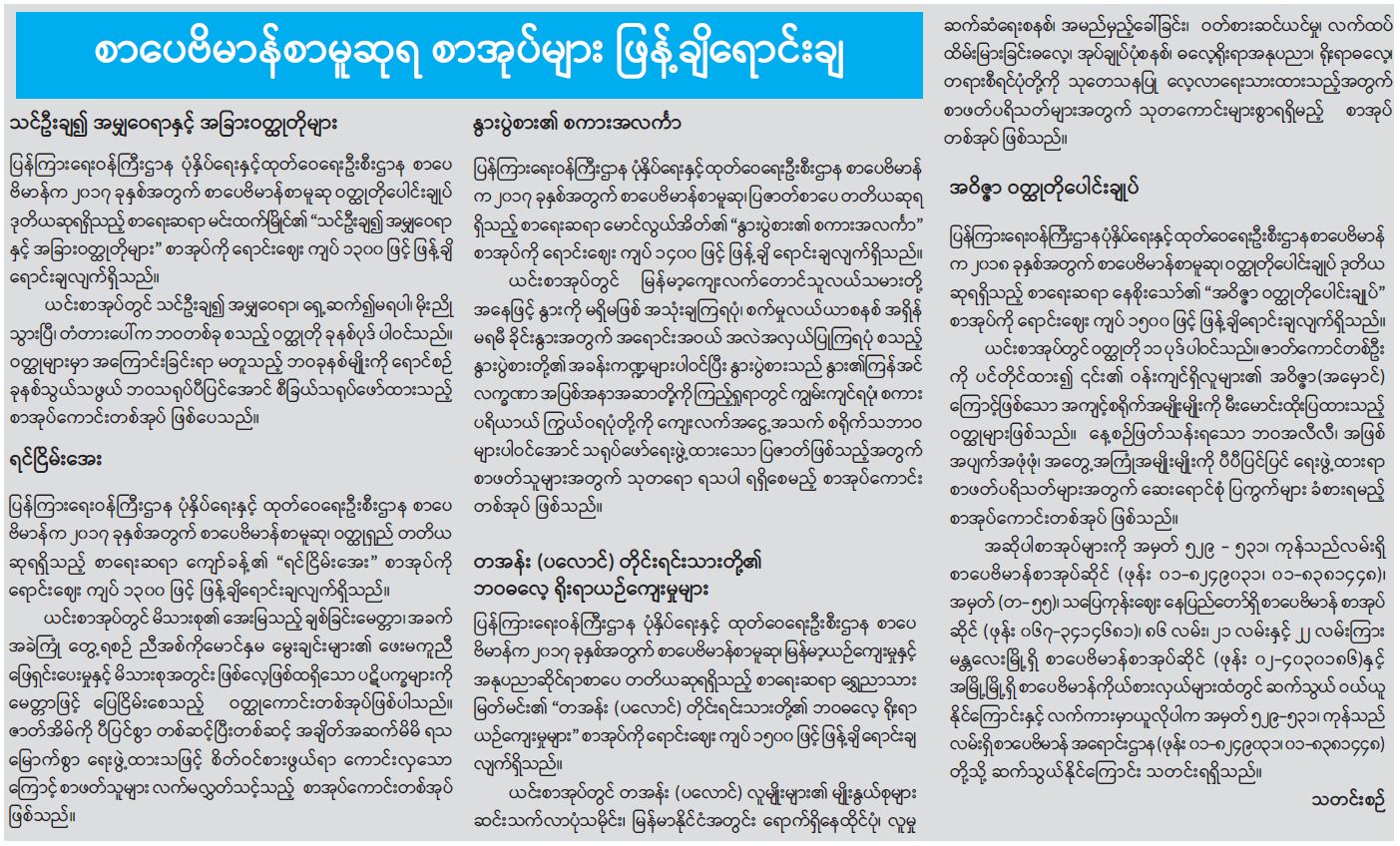 စာပေဗိမာန်စာမူဆုရ စာအုပ်များ ဖြန့်ချိရောင်းချ
