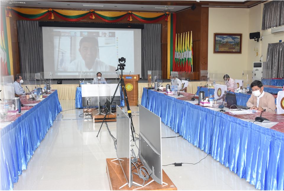 အစည်းအဝေးတွင် ကျန်းမာရေးနှင့်အားကစားဝန်ကြီးဌာန ပြည်ထောင်စုဝန်ကြီး ဒေါက်တာ သက်ခိုင်ဝင်း က လက်ရှိဖြစ်ပွားမှု အခြေအနေအရ ကူးစက်မှုနှုန်း မြန်ဆန်ပြီး များပြားသည်ကို တွေ့ရှိ ရပါကြောင်း၊ ထို့ပြင် နေအိမ်၌ အိမ်တွင်းကုသမှုခံယူရင်းဖြင့် သက်ကြီးရွယ်အိုများ၊ ရောဂါအခံရှိသူများ ကို ကူးစက်နိုင်ခြေမြင့်မားကာ late referral ဖြင့် သေဆုံးမှုများလည်း ရှိသည်ကိုတွေ့ရှိရပါကြောင်း၊ ဆေးကုသရေးလုပ်ငန်းများ နိုင်နင်းစွာဆောင်ရွက်နိုင်ရန်အတွက် ကာကွယ်ရေးလုပ်ငန်းများကိုလည်း ဆောင်ရွက်နေပါကြောင်း၊ နိုင်ငံတော်စီမံအုပ်ချုပ်ရေး ကောင်စီဥက္ကဋ္ဌ၏ လမ်းညွှန်မှုနှင့်အညီ ကျန်းမာရေးနှင့် အားစားဝန်ကြီးဌာနအနေဖြင့် ပြည်သူလူထုအား ကိုဗစ်-၁၉ ရောဂါကာကွယ်ဆေး အမြန်ဆုံး ထိုးနှံပေးနိုင်အောင် ကြိုးစားဆောင်ရွက်လျက်ရှိပါကြောင်း ။