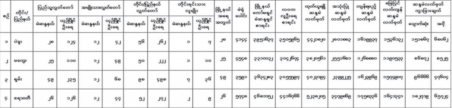 ၃။ ပဲခူးတိုင်းဒေသကြီး မြို့နယ် ၂၈ မြို့နယ်၏ ယခင် ရွေးကောက်ပွဲကော်မရှင်က ထုတ်ပြန်ခဲ့သည့် မဲဆန္ဒရှင်စာရင်းမှာ ၃၉၅၁၆၃၇ ဦး၊ အလုပ်သမား၊ လူဝင်မှုကြီးကြပ်ရေး နှင့်ပြည်သူ့အင်အားဝန်ကြီးဌာန၏ ၂၀၂၀ ပြည့်နှစ် နိုဝင်ဘာလစာရင်းအရ အသက် ၁၈ နှစ်ပြည့်ပြီး ဆန္ဒမဲပေးပိုင်ခွင့်ရှိသူများမှာ ၃၅၀၅၉၆၅ ဦး ဖြစ်သည်။ မဲဆန္ဒရှင်စာရင်းများတွင် နိုင်ငံသား၊ ဧည့်နိုင်ငံသား နိုင်ငံသားပြုခွင့်ရသူလက်မှတ်မရှိသူများမှာ ၈၅၈၆၁၁ ဦး၊ နိုင်ငံသားစိစစ်ရေးကတ်ပြားအမှတ် တစ်ခုတည်းဖြင့် မဲစာရင်းတွင် ၃ ကြိမ်နှင့်အထက် ပါဝင်နေသူများမှာ ၃၇၁၆၂ ဦး၊ ၂ကြိမ် ပါဝင်နေသူများမှာ ၃၈၂၀၅၈ ဦး၊ တိုင်းဒေသကြီးအတွင်း မြို့နယ် အချင်းချင်း အပြန်အလှန်စစ်ဆေးခြင်း (CDs Check)အရ မဲစာရင်းထပ်နေသူ ၆၁၀၀၈ ဦး၊ အသက် ၁၀ နှစ်အထက် မဲစာရင်းတွင် ပါဝင်နေသူ ၁၉၈၅ ဦး၊ ရွေးကောက်ပွဲကျင်းပသည့် နေ့တွင် အသက် ၁၈ နှစ် မပြည့်ဘဲ မဲစာရင်း၌ ပါဝင်နေသူ ၈၇၇ ဦးဖြစ်ကြောင်း စိစစ်တွေ့ရှိရသည်။