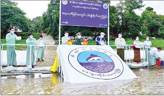 မကွေးမြို့၌ ဧရာဝတီမြစ်အတွင်းသို့ ငါးမျိုးစိုက်ထည့်