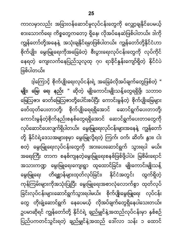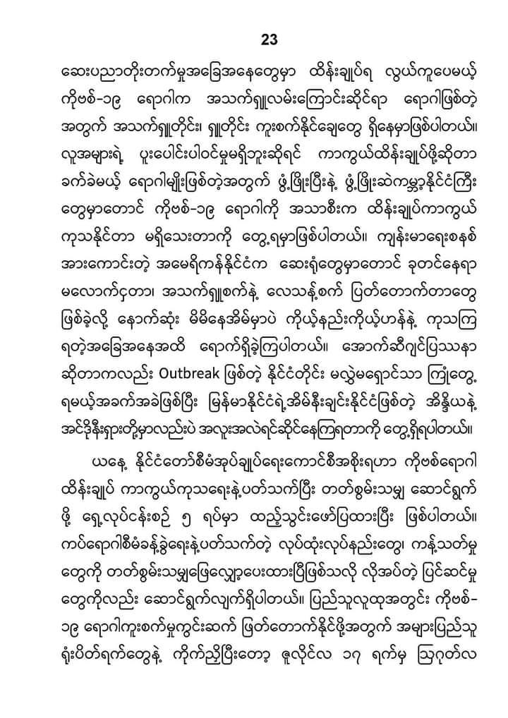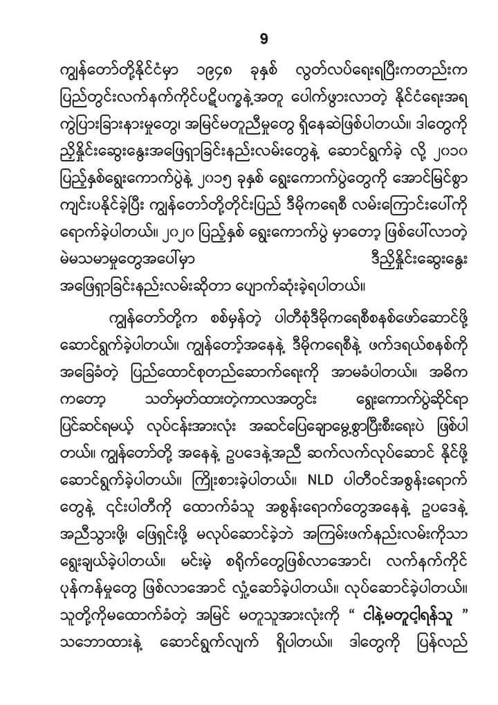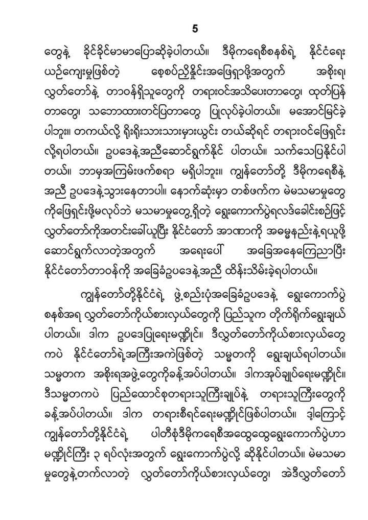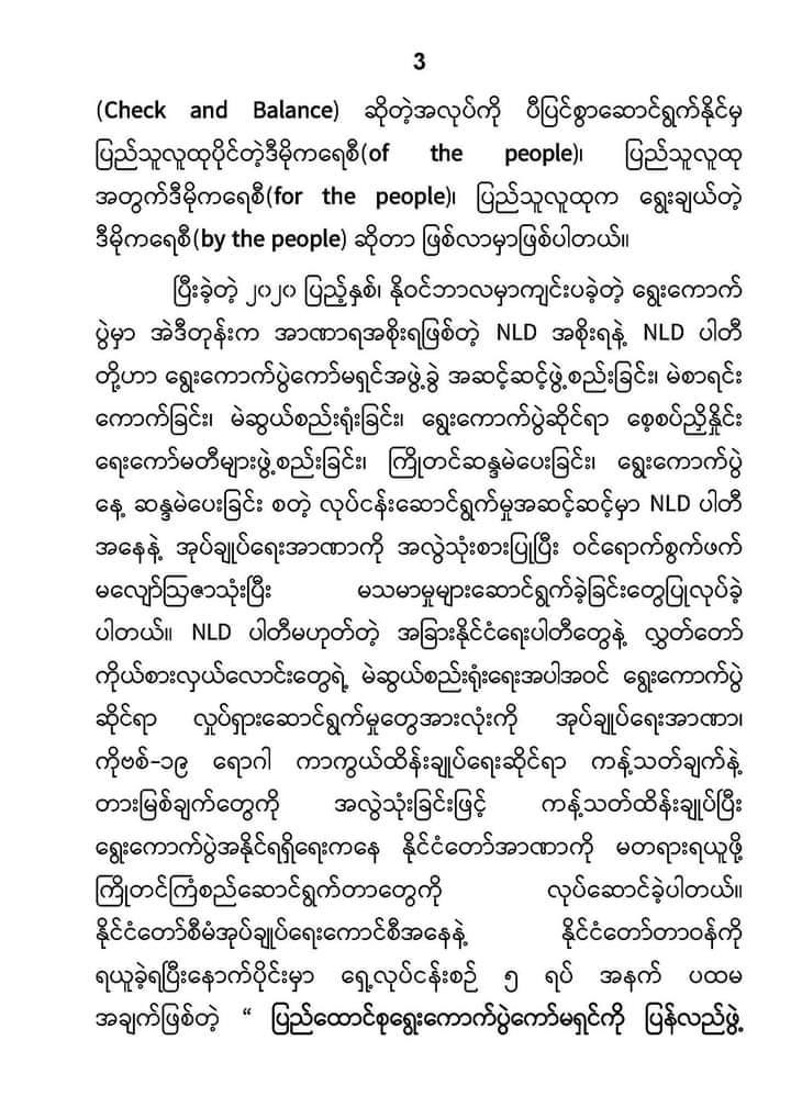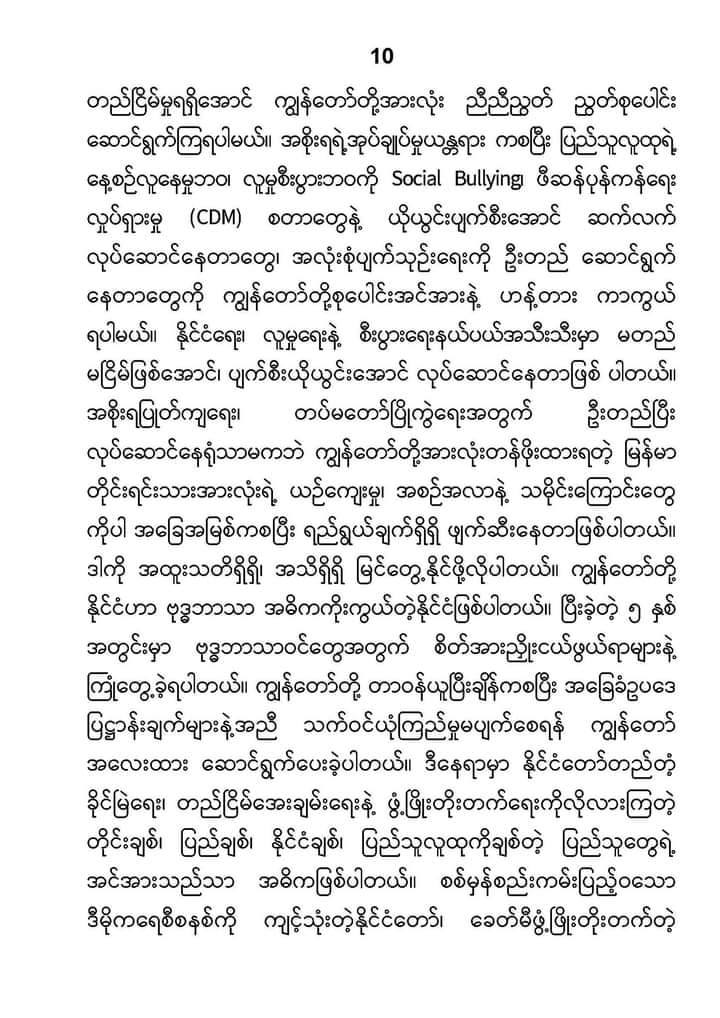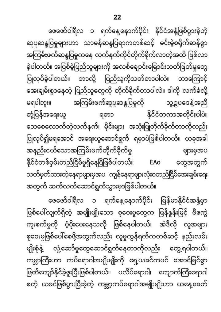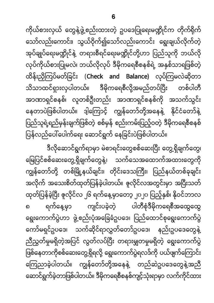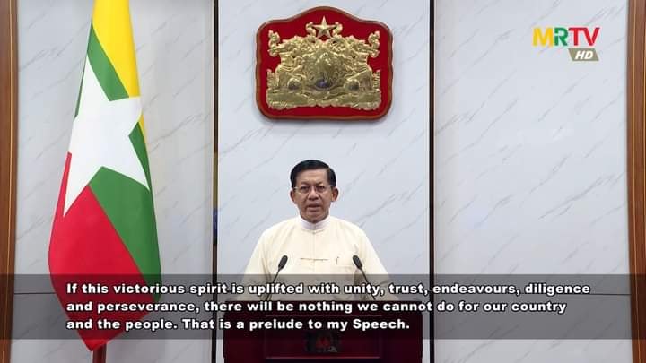 နိုင်ငံတော်စီမံအုပ်ချုပ်ရေးကောင်စီ၏ (၆) လပြည့် နိုင်ငံတော်တာဝန် ထမ်းဆောင်ခဲ့သည့် ၂၀၂၁ ခုနှစ်၊ သြဂုတ်လ ၁ ရက်နေ့တွင် နိုင်ငံတော် စီမံအုပ်ချုပ်ရေးကောင်စီဥက္ကဋ္ဌ ဗိုလ်ချုပ်မှူးကြီး မင်းအောင်လှိုင် ပြောကြားသည့်မိန့်ခွန်း