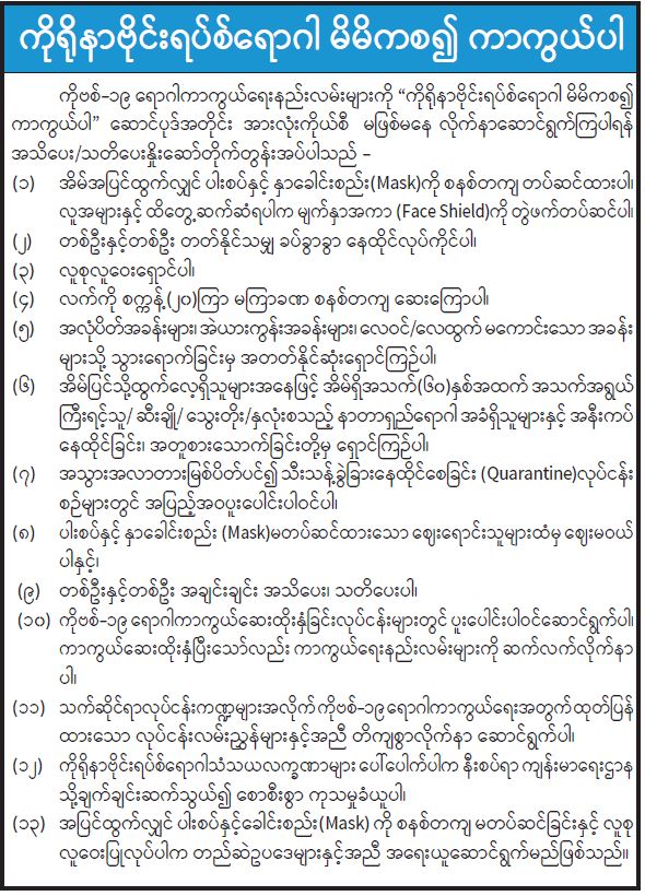 ကိုရိုနာဗိုင်းရပ်စ်ရောဂါ မိမိကစ၍ ကာကွယ်ပါ