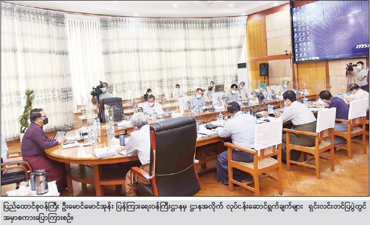 ရှေးဦးစွာ ပြည်ထောင်စု ဝန်ကြီး ဦးမောင်မောင်အုန်းက ယခုကာလသည် ကိုဗစ် - ၁၉ ရောဂါ ကူးစက်ဖြစ်ပွားမှု ပြင်းထန် နေချိန်ဖြစ်သည့်အတွက် ရုံးရက်ရှည်ပိတ်ထားသော်လည်း လုပ်ငန်း များ လစ်ဟာမှုမရှိစေရေးနှင့် လက်ရှိလုပ်ငန်းများကို ကိုဗစ် - ၁၉ ကာကွယ်တားဆီးရေး ဆိုင်ရာ အစီအမံများနှင့်အညီ အရှိန် အဟုန်မပျက် ဆက်လက်ဆောင် ရွက်ကြရန်လိုကြောင်း၊ အိမ်စောင့် အစိုးရ စတင်တာဝန်ထမ်းဆောင် သည့်ကာလတွင် ပြန်ကြားရေး ဝန်ကြီးဌာန၏ ဆောင်ရွက်မှုများ သည် မူဝါဒကို ပြောင်းလဲခြင်း မဟုတ်ဘဲ တင်ဆက်ပုံများကို ပိုမို ဆန်းသစ်အောင် ပြောင်းလဲ ဖန်တီးရမည် ဖြစ်ကြောင်း၊ လက်ရှိဆောင်ရွက်နေသည့် အနေအထား အပြင် အိမ်စောင့်အစိုးရ၊ လက်ရှိအခြေအနေနှင့် ကိုက်ညီသည့် တင်ဆက်မှု၊ ဆောင်ရွက်မှုများကို စဉ်းစားသုံးသပ်ဆွေးနွေးပေးကြ စေလိုပါကြောင်း။