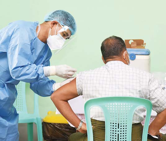 ယနေ့နံနက်ပိုင်းမှစတင်ကာ နေပြည်တော်ကောင်စီနယ်မြေ မြို့နယ်များရှိ စုရပ်နေရာများဖြစ်သော အခြေခံပညာအထက်တန်း ကျောင်းများ၌ အသက် ၆၅ နှစ်နှင့် အထက်ရှိသူများ၊ ကိုဗစ်-၁၉ ကာကွယ်၊ ထိန်းချုပ်၊ ကုသခြင်း လုပ်ငန်းများတွင် ရှေ့တန်းမှ တာဝန် ထမ်းဆောင်နေကြသည့် ကာကွယ်ဆေးမထိုးရသေးသော ကျန်းမာရေး ဝန်ထမ်းများ၊ စေတနာ့ဝန်ထမ်းများ၊ ဘိုးဘွားရိပ်သာ များရှိ ဘိုးဘွားများ၊ သာသနာ့ဝန်ထမ်းများ၊ ကာကွယ်ဆေးမထိုးရသေးသည့် နိုင်ငံ့ ဝန်ထမ်းများနှင့် မိသားစုဝင်များ၊ ပုဂ္ဂလိကဘဏ်၊ စက်ရုံ၊ အလုပ်ရုံများမှ ဝန်ထမ်းများ၊ ဟိုတယ်၊ မိုတယ်၊ တည်းခိုခန်းများမှ ဝန်ထမ်းများ၊ ပုဂ္ဂလိကသယ်ယူပို့ဆောင်ရေး လုပ်ငန်းများမှ ပြည်သူများ၊ စူပါမားကတ်များ၊ ဈေးများမှ ဝန်ထမ်းများအား ကျန်းမာရေးဝန်ထမ်းများက ကိုဗစ် - ၁၉ ကာကွယ် ရေးနည်းလမ်းများနှင့်အညီ ဆေးထိုးနှံပေးသည်။