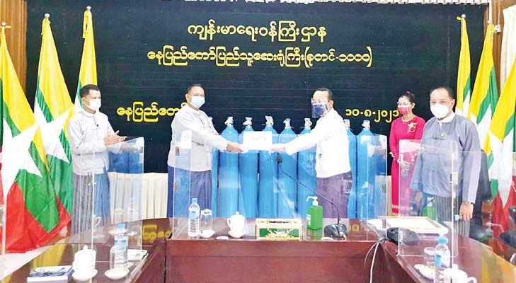 နေပြည်တော်ပြည်သူ့ဆေးရုံကြီး (ခုတင်−၁၀၀၀) သို့ အောက်ဆီဂျင်အိုးကြီး အလုံး ၆၀ နှင့် အလှူရှင်ငွေများ ပေးအပ်လှူဒါန်း