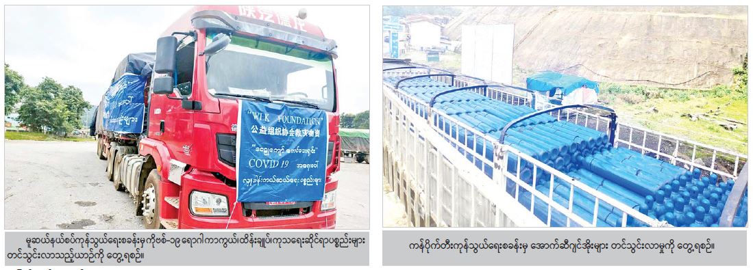 သြဂုတ်လအတွင်း ယာဉ်စီးရေ (၅၉၉)စီးဖြင့် အောက်စီဂျင်အရည် (Bowser) ယာဉ်ဖြင့် (၅၅၅) တန်၊ အောက်စီဂျင်အရည်(အိုးဖြင့်) (၁၄၉)တန်၊ အောက်စီဂျင်ဓာတ်ငွေ့အိုးဖြင့် (၆၅)တန်၊ အောက်ဆီဂျင် (အိုးခွံ) (၇၁၁၀၆) ခု၊ Oxygen Plant (၁၅) ခု၊အောက်ဆီဂျင်(Generator) (၉)ခု၊အိမ်သုံး အောက်စီ ဂျင်စက်(Oxygen Concentrator) (၅၈၇၇၀)ခု၊ Test Kit (၁၄၃၀၄၂)ခု၊ PPE (၃၂၅၈၉၂)စုံ၊ လက်အိတ် (၅၀) တန်နှင့် နှာခေါင်းစီး (Mask) (၈၀၁) တန် တင်သွင်း ခွင့်ပြုခဲ့ပြီး ဖြစ်ပါသည်။