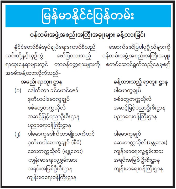 ဝန်ထမ်းအဖွဲ့အစည်း အကြီးအမှူးများ ခန့်ထားခြင်း