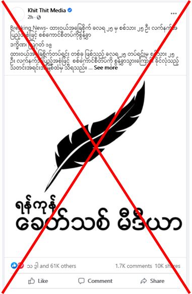 သရက်မြို့စစ်လက်နက်စက်ရုံမှ စစ်သား ၁၅ ဦး လက်နက်များဖြင့်ထွက်ပြေးဆိုသည့် ဖြစ်စဉ် နှင့်ပတ်သက်၍ တပ်မတော်သတင်းမှန်ပြန်ကြားရေးအဖွဲ့မှ တာဝန်ရှိသူတစ်ဦးအား မေးမြန်းခဲ့ရာ “သရက်မြို့ရှိ ကာကွယ်ရေးပစ္စည်းစက်ရုံက တပ်မတော်သား ၁၅ ဦး လက်နက်များဖြင့် ထွက်ပြေးသွားတယ်ဆိုပြီးတော့ Mizzima သတင်းဌာနကနေ ဖော်ပြထားတာကို တွေ့ရပါတယ် ၊ ဒါ့အပြင် ထားဝယ်မြို့တွင် တပ်မတော်သား ၂၅ ဦး လက်နက် အပြည့်အစုံဖြင့် ထွက်ပြေး တယ်ဆိုပြီး Khit Thit Media ကလည်း ဖော်ပြနေပါတယ်။ အဲဒီသတင်းတွေက  သတင်း အမှားပဲဖြစ်ပါတယ်။ လုံးဝမရှိပါဘူး။ အကြမ်းဖက်သမားတွေ ဖမ်းဆီး ထိန်းသိမ်းခံရမှုများနေပြီး ထွက်ပြေးတိမ်းရှောင်နေရတာတွေ များပြားနေတဲ့အတွက် အကြမ်းဖက်သမားတွေ စိတ်ဓါတ် ပြန်တက်ကြွလာအောင်  ဝါဒဖြန့်ထုတ်ပြန်ပေးနေတဲ့ သတင်း တွေဖြစ်ပါတယ်။ အဲလိုသတင်းမျိုး တွေကို ဒီသတင်းဌာနတွေကနေ မကြာခဏဆိုသလို မဟုတ်မမှန် ရေးသားဖော်ပြနေကြတာ ဖြစ်ပါတယ်။ ပြည်သူများအနေနဲ့ ဒီသတင်းဌာနတွေရဲ့ သတင်းကို မယုံကြဖို့ သတင်းပေး လိုပါတယ်” ဟု ပြန်လည်ဖြေကြားခဲ့သည်။