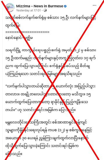 သရက်မြို့ စစ်လက်နက်စက်ရုံမှ စစ်သား(၁၅)ဦး လက်နက်များဖြင့်ထွက်ပြေးဆိုသည့် သတင်းမှာ သတင်းမှားသာဖြစ်