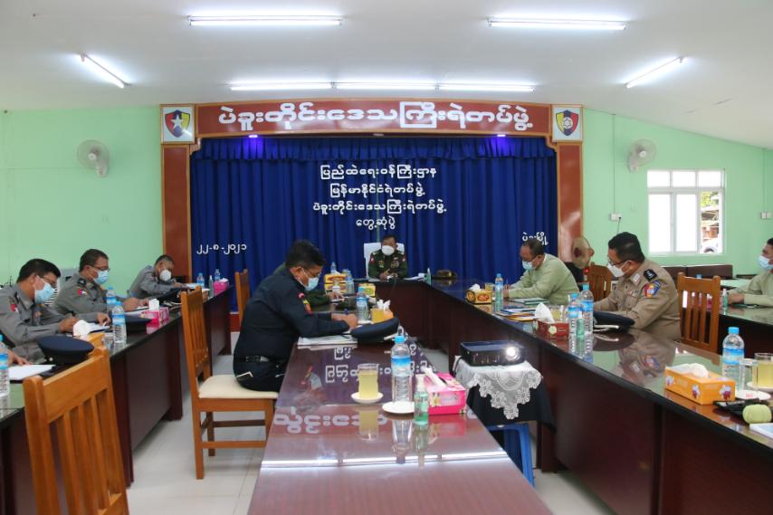 တွေ့ဆုံစဉ် ပြည်ထောင်စုဝန်ကြီးက ပြည်ထဲရေးဝန်ကြီးဌာနသည် လုံခြုံရေးဦးစားပေး ဆောင်ရွက် ရသည့်ဌာနဖြစ်ကြောင်း၊ လုံခြုံရေးအမြင်ရှိရန်နှင့် သတိဝီရိယဖြင့် နေထိုင်သွားလာ လုပ်ကိုင်ကြရန် လိုအပ်ကြောင်း၊ တာဝန်ရှိသူအဆင့်ဆင့်မှလည်း လုံခြုံရေးကျိုးပေါက်မှု မရှိစေရေး အမြဲမပြတ် စစ်ဆေးကြပ်မတ်နေရန် လိုအပ်ကြောင်း၊ ဌာနတိုင်းစိုက်ပျိုး၊ မွေးမြူရေးတစ်ပိုင်တစ်နိုင် လုပ်ကိုင်ကြ ရန်နှင့် လတ်တလောကာလတွင် ကိုဗစ်-၁၉ ရောဂါဖြစ်ပွားမှုများပြားနေသဖြင့် ကူးစက်မှုမခံရစေရေး ကျန်းမာရေးဝန်ကြီးဌာနမှ ထုတ်ပြန်ထားသည့် ကိုဗစ်-၁၉ ရောဂါကာကွယ်ရေးဆိုင်ရာ စည်းမျဉ်း စည်းကမ်းများနှင့်အညီ နေထိုင်သွားလာရေးတို့ကို မှာကြားသည်။