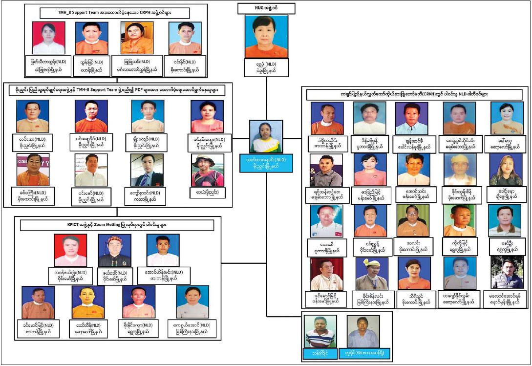 ထို့ပြင် ဇွန်လ ၂၉ ရက်တွင် Signal Application မှတစ်ဆင့် ကချင်ပြည်နယ်အတွင်းရှိ မြို့နယ် များအလိုက် တရားမဝင်ဖွဲ့စည်းထားသည့် ပြည်သူ့အုပ်ချုပ်ရေး အဖွဲ့ (ပအဖ)၊ ပြည်သူ့လုံခြုံရေး အဖွဲ့(ပလဖ)၊ ပြည်သူ့ကာကွယ်ရေး အဖွဲ့ (ပကဖ)တို့၏လက်ရှိဆောင် ရွက်နေမှုအခြေအနေ၊ မြို့နယ် အလိုက် တပ်မတော်၏ ထိန်းချုပ်ထားရှိမှု၊ ပြည်သူများ၏ ပူးပေါင်းဆောင်ရွက်မှု အခြေအနေနှင့် မြို့နယ်အလိုက် PDF အဖွဲ့များ ဖွဲ့စည်းထားမှု၊ နယ်မြေအလိုက် KIA သောင်းကျန်းသူအဖွဲ့များနှင့် ပူးပေါင်းလှုပ်ရှားမှုနှင့် ပတ်သက် သည့်အချက်များကို NUG အဖွဲ့ ထံသို့ ပေးပို့ဖြန့်ဝေခဲ့ကြောင်း။