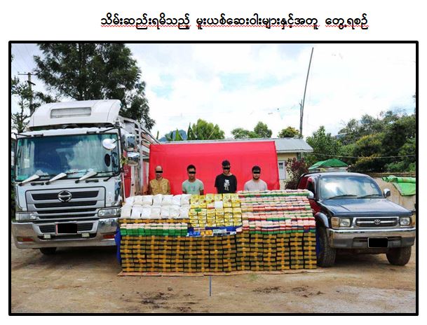 ဖြစ်စဉ်မှာ မူးယစ်ဆေးဝါးတားဆီးနှိမ်နင်းရေးရဲတပ်ဖွဲ့မှ တပ်ဖွဲ့ဝင်များပါဝင်သော ပူးပေါင်း အဖွဲ့သည် ဩဂုတ်လ ၂၆ ရက်နေ့ မွန်းလွဲ ၁ နာရီအချိန်ခန့်တွင် လွိုင်လင်မြို့နယ်၊ လွိုင်လင်-တောင်ကြီး ကားလမ်း၊ ဟိုတင့်ကျေးရွာအနီးတွင် လွိုင်လင်မှ တောင်ကြီး သို့ ယာဉ်မောင်း စိုင်းလောဝ်လိုင်း (ခ)အိုက်လောဝ် (၄၁)နှစ် မောင်းနှင်ပြီး စိုင်းလိန်(ခ)အိုက်လိန်(၂၀)နှစ် လိုက်ပါ လာသည့် ၁၂ ဘီး မော်တော်ယာဉ်ကို သတင်းအရရှာဖွေရာ ဒေသကာလတန်ဖိုး ငွေကျပ် ၁ ဒသမ ၈ ဘီလီယံကျော် တန်ဖိုးရှိ ဘိန်းဖြူ ၅၃ ဒသမ ၉၉ ကီလို၊ အိုက်စ်(မက်သ်အဖက်တမင်း) ၅၀ ကီလို၊ စိတ်ကြွရူးသွပ် ဆေးပြား ၂၄,၀၀၀ တို့ကို သိမ်းဆည်းရမိခဲ့ပြီး စစ်ဆေးပေါ်ပေါက် ချက်များအရ မွန်းလွဲ ၂ နာရီခွဲခန့်တွင် မူးယစ်ဆေးဝါးများသယ်ဆောင်ရာတွင် ပူးပေါင်း ဆောင်ရွက်သူများ ဖြစ်ကြသည့် ကျင်းထန် (ခ) ရှီကျင်းထန် (၂၇)နှစ်၊ ရန်ကျုံးဝေ(ခ)အားဝေ (၂၁) နှစ်တို့ကို Toyota Hilux မော်တော်ယာဉ်နှင့်အတူ တောင်ကြီးမြို့နယ်၊ ၄ မိုင်ပူးပေါင်း စစ်ဆေးရေးစခန်းတွင် ဆက်လက်ဖမ်းဆီးရမိခဲ့သဖြင့် ၎င်းတို့အား မူးယစ်ဆေးဝါးနှင့် စိတ်ကို ပြောင်းလဲစေသော ဆေးဝါးများဆိုင်ရာ ဥပဒေအရ အရေးယူထားရှိပြီး ကွင်းဆက်ပြစ်မှု ကျူးလွန်သူများအား စစ်ဆေးဖော်ထုတ်လျက်ရှိကြောင်း သိရသည်။