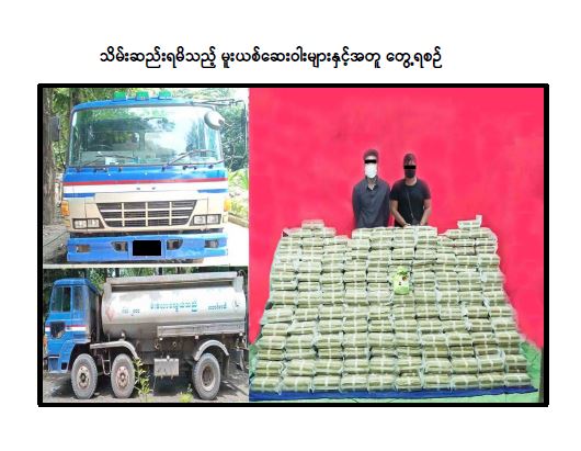 ဖြစ်စဉ်မှာ လုံခြုံရေးတပ်ဖွဲ့ဝင်များပါဝင်သော ပူးပေါင်းအဖွဲ့သည် ဩဂုတ် ၂၇ ရက် နံနက် ၁၁ နာရီခွဲတွင် ရခိုင်ပြည်နယ်၊ မောင်တောမြို့နယ်၊ ကျီးကန်းပြင်စစ်ဆေးရေးဂိတ်တွင် မောင်တောမှ ကြိမ်ချောင်းသို့ အောင်ကျော်လှိုင်(ခ)အောင်ကျော်(ခ)ဂေါက်ကြီး(၃၁)နှစ် မောင်းနှင်ပြီး ဇနီးဖြစ်သူ မလှိုင်လှိုင်ဝေ(ခ)ရည်မွန်သန့်(ခ)မေလေး(၂၆)နှစ် လိုက်ပါလာသည့် NISSAN ၈ ဘီး ဆီဘောက်ဆာ ယာဉ်ကို စစ်ဆေးရန်ရပ်တန့်ခိုင်းစဉ် ယာဉ်မောင်းမှာ ယာဉ်ပေါ်မှခုန်ချ ထွက်ပြေးသွားခဲ့သဖြင့် ပူးပေါင်းအဖွဲ့မှ ဝိုင်းဝန်းပိတ်ဆို့ဖမ်းဆီးရာ ညနေ ၆ နာရီခန့်တွင် အဆိုပါနေရာနှင့် ၆ ဖာလုံခန့်အကွာ တောစပ်တွင် အောင်ကျော်လှိုင်(ခ) အောင်ကျော်(ခ) ဂေါက်ကြီးကို ဖမ်းဆီးရမိခဲ့ပြီး ယာဉ်၏ ဆီသိုလှောင်ကန်ကို ဖွင့်ဖောက်စစ်ဆေးရာ ဒေသကာလတန်ဖိုး ငွေကျပ် ၇ ဒသမ ၇၈ ဘီလီယံကျော် တန်ဖိုးရှိ စိတ်ကြွရူးသွပ် ဆေးပြား ၅ ဒသမ ၁၇ သန်းကျော်၊ အိုက်စ်(မက်သ်အဖက်တမင်း)အလေးချိန်ဂရမ် ၈၀၀ သိမ်းဆည်းရမိ ခဲ့သဖြင့် ၎င်းတို့အား မူးယစ်ဆေးဝါးနှင့် စိတ်ကိုပြောင်းလဲစေသော ဆေးဝါးများဆိုင်ရာ ဥပဒေအရ အရေးယူထားရှိပြီး ကွင်းဆက်ပြစ်မှုကျူးလွန်သူများအား စစ်ဆေးဖော်ထုတ်လျက် ရှိကြောင်း သိရသည်။