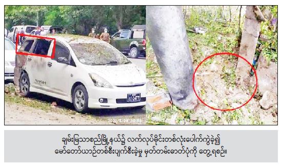 အလားတူ ယနေ့ နံနက် ၁၀ နာရီ ၁၀ မိနစ်ခန့်တွင် မန္တလေးတိုင်းဒေသကြီး၊ ချမ်းမြသာစည် မြို့နယ်၊ မြို့သစ်(၄)ရပ်ကွက်၊ ၆၂ လမ်းနှင့် ၁၁၂ လမ်းထောင့်တွင် COVID-19 ရောဂါကာကွယ် ထိန်းချုပ်နိုင်ရေးအတွက် စစ်ဆေးလျက်ရှိသည့် နယ်ကျော်စစ်ဆေးရေးဂိတ် အနီးတွင် လက်လုပ်မိုင်းတစ်လုံးပေါက်ကွဲခဲ့ပြီး ပေါက်ကွဲမှုကြောင့် အဆိုပါနေရာအနီး လမ်းပေါ်၌ ရပ်တန့်ထားသည့် မော်တော်ယာဉ်၏ ရှေ့လေကာမှန်၊ နောက်ဝဲ/ယာလေကာမှန်တို့ ကွဲအက် ပျက်စီးခဲ့ကာ လူထိခိုက်မှုမရှိကြောင်း သိရသည်။