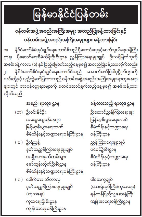 ဝန်ထမ်းအဖွဲ့အစည်းအကြီးအမှူး အတည်ပြုခန့်ထားခြင်းနှင့် ဝန်ထမ်းအဖွဲ့အစည်းအကြီးအမှူးများ ခန့်ထားခြင်း