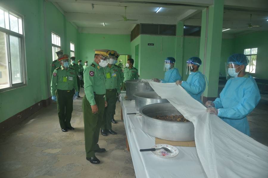 အဆိုပါ စောင့်ကြည့်လူနာများနှင့် ဓာတ်ခွဲအတည်ပြု ပိုးတွေ့လူနာများ၏ နေထိုင်စားသောက်ရေးနှင့် ကျန်းမာရေးစောင့်ရှောက်မှု လုပ်ငန်းများကို သက်ဆိုင်ရာ တိုင်းစစ်ဌာနချုပ်များရှိ နယ်မြေခံ ဆေးကုသရေး အဖွဲ့များနှင့် တာဝန်ရှိသူများက ကူညီဆောင်ရွက်ပေးလျက်ရှိသည်။ ယင်းသို့ ဆောင်ရွက်နေမှုများကို နေပြည်တော် တိုင်းစစ်ဌာနချုပ် တိုင်းမှူး ဗိုလ်ချုပ် ဇော်ဟိန်းနှင့် အဖွဲ့ဝင်များက သွားရောက် ကြည့်ရှုပြီး လိုအပ်သည်များ ပေါင်းစပ်ညှိနှိုင်း ဆောင်ရွက်ပေးခဲ့ကြောင်း သတင်းရရှိသည်။