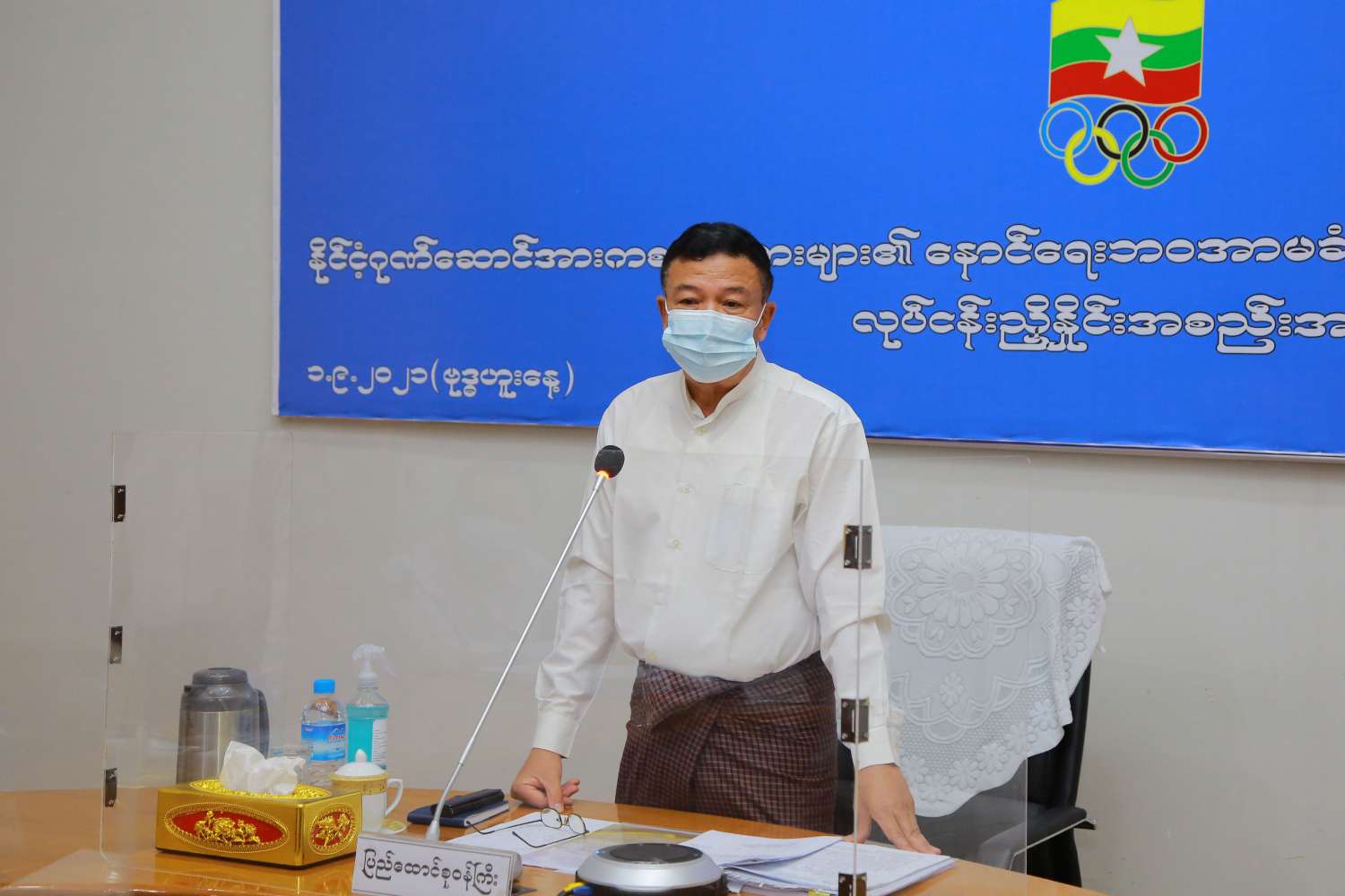 အစည်းအဝေးတွင် ပြည်ထောင်စုဝန်ကြီး ဦးမင်းသိန်းဇံ က နိုင်ငံ့ဂုဏ်ဆောင်အားကစား သမားဟောင်းများဘဝနောင်ရေး အာမခံချက်ရရှိစေရေးအတွက် နိုင်ငံတော်မှ အထူးအလေး ပေးဆောင်ရွက်ရန် မူဝါဒချမှတ်ထားပါကြောင်း၊ အားကစားသမားတစ်ယောက်သည် နိုင်ငံ့ ဂုဏ်ဆောင်အားကစားသမားဖြစ်ရန် ဘဝသက်တမ်းတစ်လျှောက်လုံး အားကစားတွင် စိတ် ရောကိုယ်ပါနှစ်မြှုပ်ပြီး ကြိုးစားဆောင်ရွက်ခဲ့ကြသူများ ဖြစ်ပါကြောင်း၊ ယခုအခါ အားကစား သမားဟောင်းများသည် အနားယူပြီး မကစားနိုင်ချိန်တွင် အများစုမှာ အထောက်အကူမဲ့ ချို့တဲ့စွာနေထိုင်နေရပါကြောင်း၊ အားကစားသမားဟောင်းများအား နိုင်ငံတော်အနေဖြင့် တစ်စိတ်တစ်ပိုင်း အထောက်အကူအသိအမှတ်ပြု ဆောင်ရွက်ပေးမည်ဆိုပါက လက်ရှိ အားကစားသမားများအနေနှင့် နိုင်ငံတော်အတွက် ကြိုးစားရာတွင် တစ်ချိန် မိမိတို့အား နိုင်ငံတော်မှ ပြန်လည်ကြည့်ရှု၍ နောင်ရေးစီမံဆောင် ရွက်ပေးထားသည်ဟူသော အသိရှိလာပါက ယခင်ထက် ပိုမိုယုံကြည်ချက်မြင့်မားပြီး နိုင်ငံတော်အတွက် ကြိုးစားဆောင်ရွက်လာမည်ဖြစ် ပါကြောင်း ပြောကြားသည်။