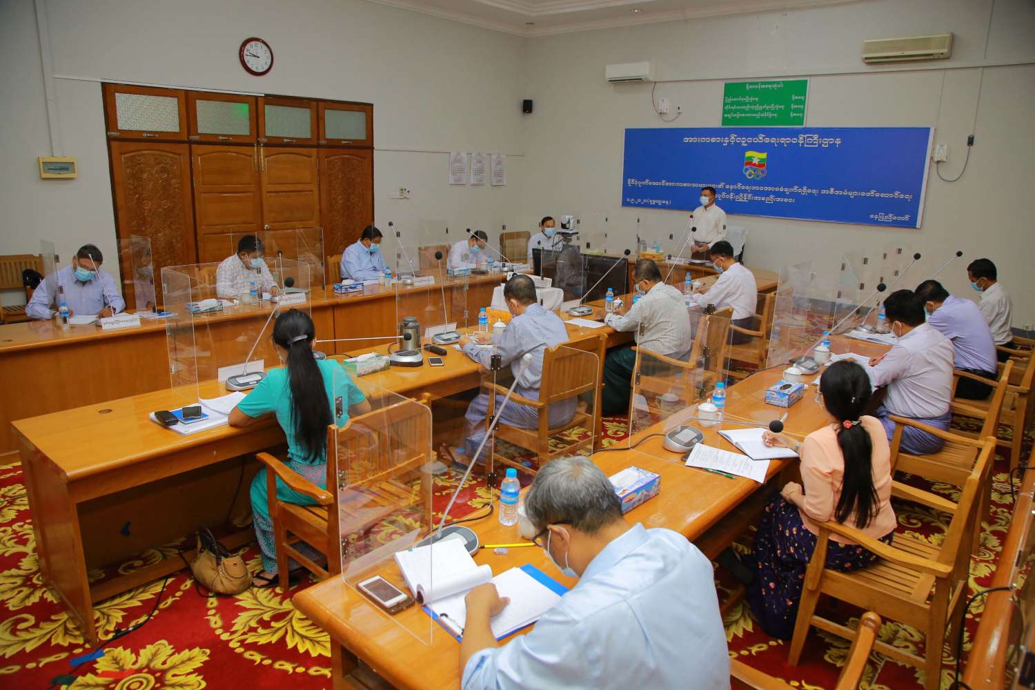 နိုင်ငံ့ဂုဏ်မြှင့်တင်ဆောင်ရွက်ခဲ့ကြသည့် မြန်မာ့လက်ရွေးစင် အားကစားသမားဟောင်းများ၏ ဘဝနောင်ရေးအာမခံချက်ရရှိရေး အစီအမံများ ညှိနှိုင်းအစည်းအဝေးကို ယနေ့နံနက် နာရီခွဲတွင် နေပြည်တော်ရှိ အားကစားနှင့် လူငယ်ရေးရာဝန်ကြီးဌာန အစည်းအဝေးခန်းမ၌ ကျင်းပသည်။