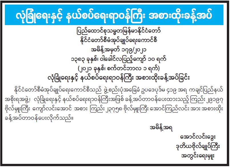 ရန်ကုန်မြို့နှင့် မန္တလေးမြို့အတွက် ရည်ညွှန်းလက်ကားဈေးနှုန်းများနှင့် ပြည်ထောင်စုနယ်မြေ နေပြည်တော်၊ တိုင်းဒေသကြီး/ပြည်နယ် မြို့တော်များအတွက် ရည်ညွှန်းလက်လီဈေးနှုန်းများ