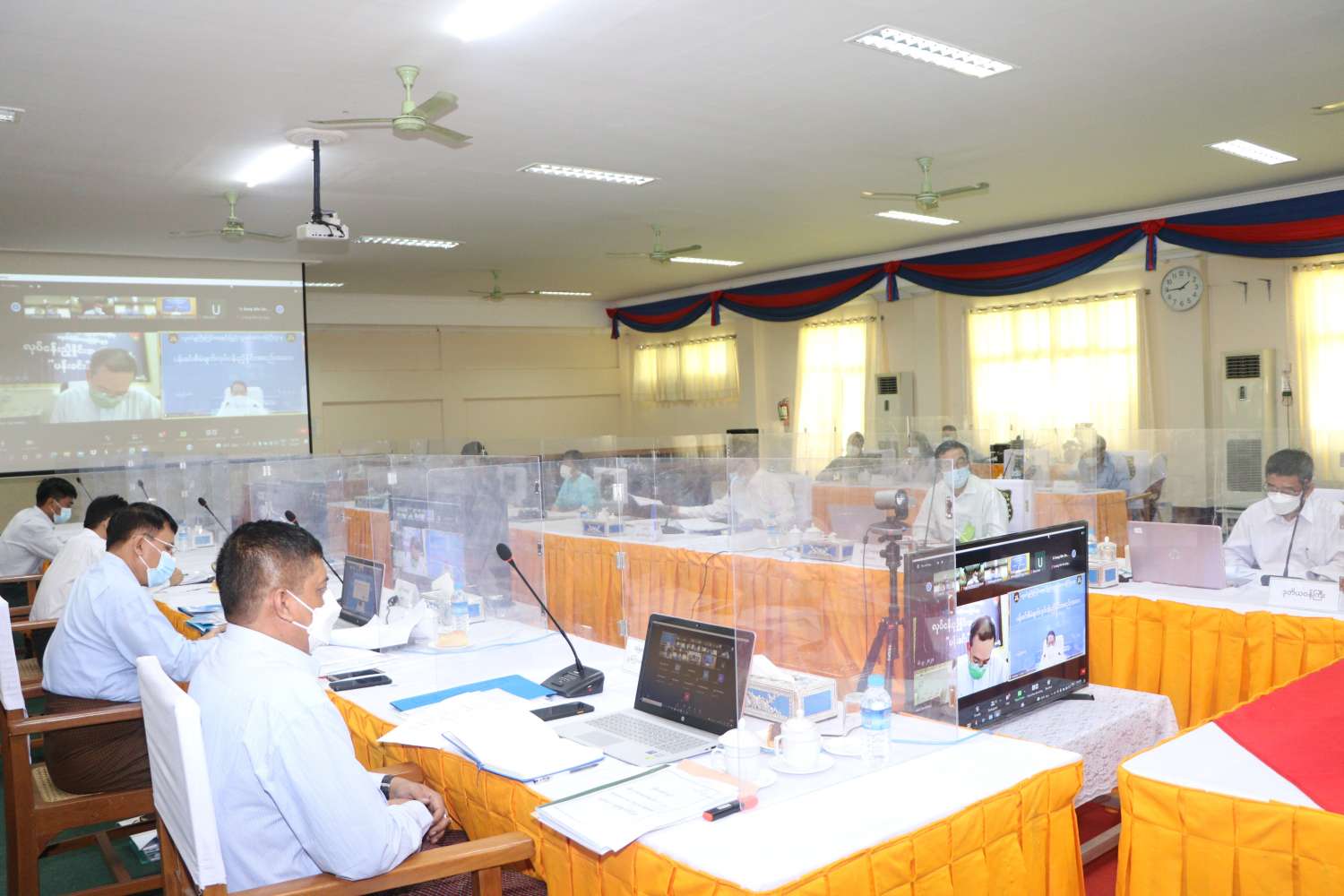 အစည်းအဝေးတွင် ပြည်ထောင်စုဝန်ကြီးဦးခင်ရီက နိုင်ငံတော်၏စီမံချက်ဖြစ် သည့် ပန်းခင်းစီမံချက်အား မိမိတို့ဌာနမှ တာဝန်ယူ အကောင်အထည်ဖော် ဆောင်ရွက်နေမှု၊ ပန်းခင်းစီမံချက်သည် သတ်မှတ်အချိန်ကာလအတွင်း သတ်မှတ် လုပ်ငန်းပမာဏ ပြည့်မီပြီးစီးအောင် ကြိုးပမ်းဆောင်ရွက် ကြရမည့်အခြေအနေ၊ ယခု ကိုဗစ်-၁၉ ရောဂါဖြစ်ပွားမှု ကာလအတွင်း လုပ်ငန်းဆောင်ရွက်မှု နှောင့်နှေး ရသည့်အပေါ် စနစ်တကျသုံးသပ်ကာ ဆောင်ရွက်နိုင်သမျှ လုပ်ငန်းများ အရှိန်အဟုန်မပျက် ဆောင်ရွက် ကြရန်လို အပ်မှု၊ လုပ်ငန်းများဆောင်ရွက်ရာတွင်လည်း ကိုဗစ်-၁၉ ရောဂါဆိုင်ရာ ကျန်းမာရေး ညွှန်ကြားချက်များနှင့်အညီ တိကျစွာ လိုက်နာဆောင်ရွက်နိုင်‌ရေး အခြအနေ၊ လုပ်ငန်းများ ထိရောက် အောင်မြင်ရေးအတွက် ဝန်ကြီးဌာနအနေဖြင့် လိုအပ်သည်များ ဖြည့်ဆည်းဆောင်ရွက် ပေးနေမှု၊ သက်ဆိုင်ရာ တိုင်းဒေသကြီး/ပြည်နယ် ဦးစီးမှူးများ ကလည်း ဒေသအာဏာပိုင်များ၊ မိတ်ဖက်အဖွဲ့အစည်းများနှင့် ညှိနှိုင်းပေါင်းစပ် ဆောင်ရွက်ရမည့် အခြေအနေ၊ မီဒီယာပိုင်းမှ online / offline အသုံးပြု၍ ပြည်သူများ သိရှိနားလည် ဆောင်ရွက်နိုင်ရေး အတွက် စီမံဆောင်ရွက်နေမှု အခြေအနေ၊ လက်ရှိအခြေအနေအရ တပ်မတော်အပါ အဝင် အဖွဲ့အစည်း အသီးသီးသို့ ဆက်သွယ်အသိပေးကာ စာရင်းဇယားများ ကောက်ယူဆောင်ရွက်ရေးနှင့် ရုံးများသို့ လာရောက်ဆောင် ရွက်နိုင်မည့် အရေ အတွက် သတ်မှတ်ကန့်သတ်ဆောင်ရွက်ပေးနိုင်ရေးအခြေအနေ၊ ဆောင်ရွက်ရမည့် လုပ်ငန်းပမာဏ အလိုက် တစ်ဆင့်ပြီး တစ်ဆင့် ဆောင်ရွက်ရင်း ရည်မှန်းချက်သို့ အောင်မြင်‌အောင် ကြိုးပမ်း ဆောင်ရွက်ကြရန်နှင့် လုပ်ငန်းလိုအပ်ချက်များကို အချိန်နှင့်တစ်ပြေးညီ တင်ပြဆောင်ရွက်ကြရန် အကျယ်တဝင့် ရှင်းလင်းပြောကြားသည်။