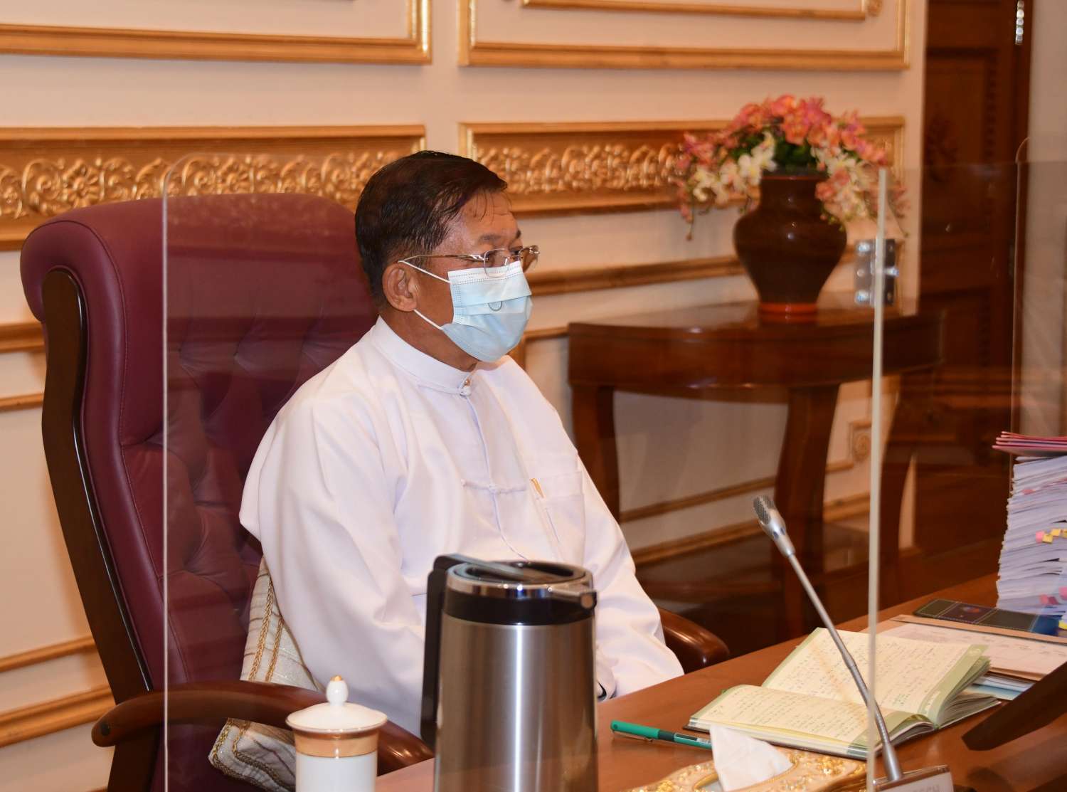 ကိုဗစ်-၁၉ ကာကွယ်ရေးလုပ်ငန်းနှင့်ပတ်သက်ပြီး နှောင့်နှေးမှုမရှိအောင် ဆောင်ရွက်ပေးလျက် ရှိကြောင်း၊ ကိုဗစ်-၁၉ ကာကွယ်ဆေးနှင့်အခြားဆေးပစ္စည်းများဝယ် ယူမှုနှင့်ပတ်သက်၍ အမေရိကန် ဒေါ်လာ ၁၆၉ သန်းအကုန်အကျခံဝယ်ယူခဲ့ပြီး ဆေးရုံ၊ ဆေးခန်းပြုပြင်ခြင်း၊ ကိုဗစ်စင်တာ များနှင့် လူမှုရေးအဖွဲ့အစည်းများအတွက် ငွေကျပ် ၅၆၆ ဘီလီယံသုံးစွဲခဲ့ကြောင်း၊ ထို့ပြင် အထွေထွေ ကိစ္စများအတွက် အမေရိကန်ဒေါ်လာ သိန်းကျော်ကိုလည်း သုံးစွဲခဲ့ကြောင်း၊ ကိုဗစ်-၁၉ ရောဂါကာကွယ်ရေးလုပ်ငန်းများအတွက် သုံးစွဲရန် ဘဏ္ဍာငွေကိုလည်း အဆင်သင့်ပြင်ဆင် ထားကြောင်း၊ ထို့အတွက် တာဝန်ရှိသူ များအနေဖြင့် အကျိုးရှိရှိ လုပ်ဆောင်သွားကြရန် လိုအပ်ကြောင်း။