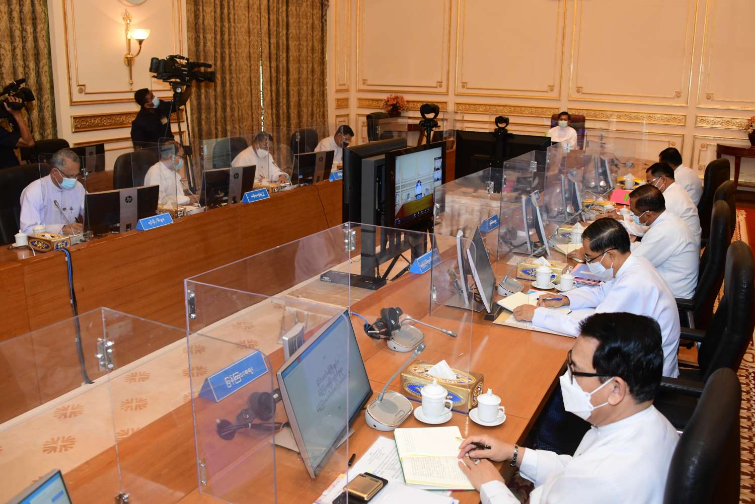 ပြည်ထောင်စုသမ္မတမြန်မာနိုင်ငံတော် အိမ်စောင့်အစိုးရအဖွဲ့ အစည်းအဝေး အမှတ်စဉ်(/၂၀၂၁)ကို  ယနေ့မွန်းလွဲပိုင်းတွင် နေပြည်တော်ရှိ နိုင်ငံတော်စီမံအုပ်ချုပ်ရေး ကောင်စီဥက္ကဋ္ဌရုံး အစည်းအဝေးခန်းမ၌ ကျင်းပရာ နိုင်ငံတော်စီမံအုပ်ချုပ်ရေးကောင်စီ ဥက္ကဋ္ဌ၊ ပြည်ထောင်စုသမ္မတမြန်မာနိုင်ငံတော် အိမ်စောင့်အစိုးရအဖွဲ့ နိုင်ငံတော်ဝန်ကြီးချုပ် ဗိုလ်ချုပ်မှူးကြီး မင်းအောင်လှိုင် တက်ရောက် အမှာစကားပြောကြားသည်။