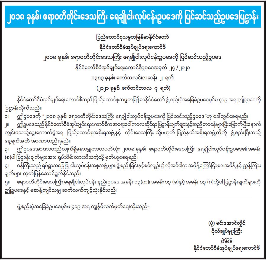 ၂၀၁၈ ခုနှစ်၊ ဧရာဝတီတိုင်းဒေသကြီး ရေချိုငါးလုပ်ငန်းဥပဒေကို ပြင်ဆင်သည့်ဥပဒေပြဋ္ဌာန်း