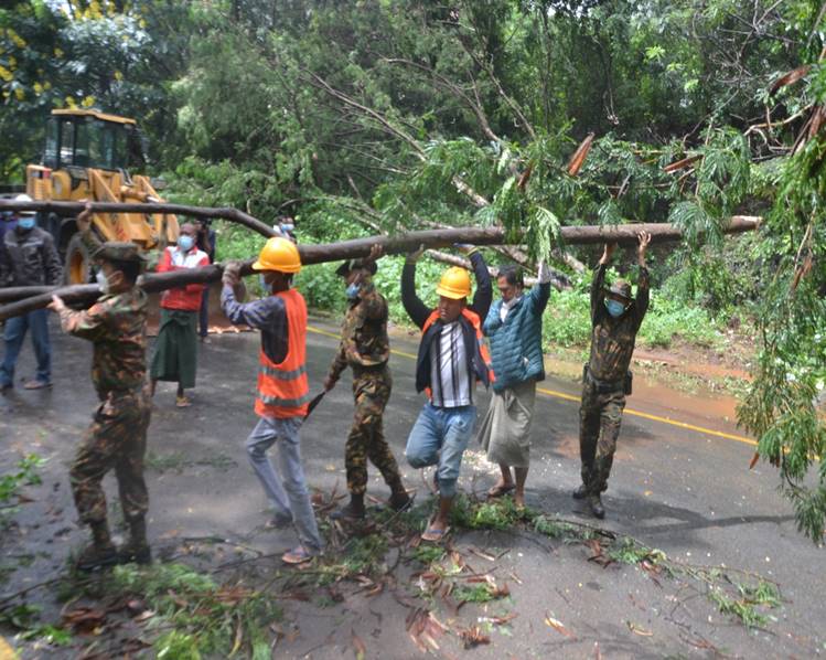 အဆိုပါ လမ်းပိတ်ဆို့မှုများဖြစ်ပေါ်ခဲ့သည့် နေရာများ၌ အရှေ့ပိုင်းတိုင်းစစ်ဌာန ချုပ်မှ နယ်မြေခံ တပ်မတော်သားများ၊ မြို့နယ်မီးသတ်တပ်ဖွဲ့ဝင်များနှင့် လမ်းဦးစီးဌာန မှ တာဝန်ရှိသူများက စက်ယန္တရားများအသုံးပြု၍ ပိတ်ဆို့နေသည့် သစ်ပင်များအား ခုတ်ထွင်ရှင်းလင်းခြင်း၊ ပြိုကျခဲ့သော မြေသားများအား ရှင်းလင်းဖယ်ရှားခြင်းတို့ကို ဆောင်ရွက်ပေးခဲ့သဖြင့် အများပြည်သူများ ပုံမှန်အတိုင်း သွားလာနိုင်ပြီးဖြစ်ကြောင်း သတင်းရရှိသည်။