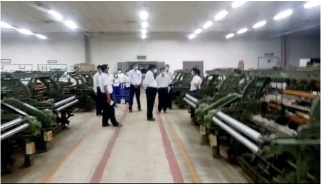 မွန်းလွဲပိုင်းတွင် ပြည်ထောင်စုဝန်ကြီးသည် မကွေးတိုင်းဒေသကြီး ပခုက္ကူမြို့ရှိ အမှတ်(၅) အထည်စက်ရုံနှင့် အမှတ်(၁၁)အထည်စက်ရုံ တို့သို့ ရောက်ရှိပြီး စက်ရုံအတွင်း စက်ပစ္စည်းများ တပ်ဆင်ထားရှိမှု အခြေအနေနှင့် ထုတ်လုပ်မှု လုပ်ငန်းစဉ်အဆင့်ဆင့် တို့အား လှည့်လည်ကြည့်ရှု စစ်ဆေးကာ နိုင်ငံပိုင်စက်ပစ္စည်း၊ အဆောက်အဦ၊ မြေ စသည့် ပုံသေပိုင်ပစ္စည်းများနှင့် ပတ်သက်၍ စနစ်တကျစီမံခန့်ခွဲရန်နှင့် ပျက်စီးဆုံးရှုံးမှုမရှိစေရေး အလေးထား ဆောင်ရွက်ရန်၊ စက်ရုံအား အရှုံးအမြတ်အခြေအနေ (Break Event Point) ဖြစ်အောင် ဝိုင်းဝန်းကြိုးစားဆောင်ရွက်ရန်၊ ရှိပြီးဖြစ်သည့် နည်းပညာများ ပျောက်ပျက် မသွားစေရေးအတွက် ဆင့်ပွား သင်တန်းများ ပြုလုပ်ပေးရန်၊ ပြုပြင်ထိန်းသိမ်းရေး လုပ်ငန်းများ အစဉ်အမြဲ ဆောင်ရွက်သွားရန် မှာကြားပြီး ဝန်ထမ်းများ၏ တင်ပြချက်များကို ဖြည့်ဆည်းဆောင်ရွက်ပေးသည်။