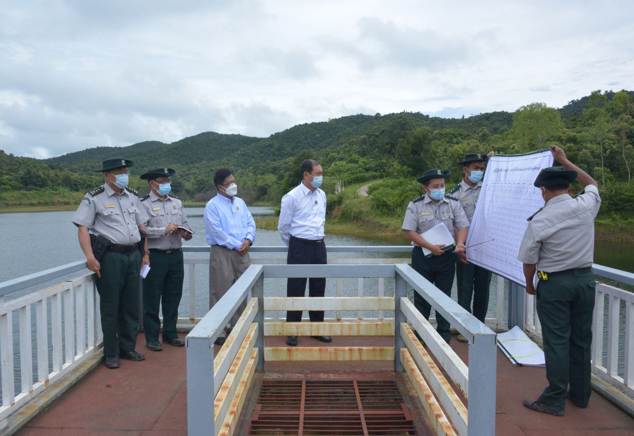 ဆက်လက်၍ ပြည်ထောင်စုဝန်ကြီးသည် ပြင်ဦးလွင်မြို့သို့ ရေပေးဝေလျက်ရှိသည့် အထက် သစ်တစ်ပင်ရေကန်၊ အောက်သစ်တစ်ပင်ရေကန်နှင့် နောင်ခမ်းကြီးကျေးရွာသို့ ရေပေး ဝေလျက်ရှိ သည့်နောင်ခမ်းကြီးရေကန်တို့၏ ရေဝေရေလဲဒေသဖြစ်သော တောင်ပြိုတိုးချဲ့ ကြိုးဝိုင်းအကွက်အမှတ် (၇)အတွင်း တည်ထောင်စိုက်ပျိုးထားသည့် ၁/၂၀၁၇ ရေဝေရေလဲ စိုက်ခင်း (၁၀၀)ဧကအား သွားရောက် စစ်ဆေးသည်။