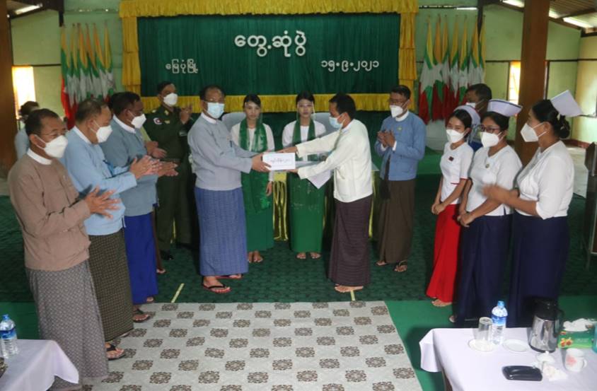 ကိုဗစ်-၁၉ ရောဂါဓာတ်ခွဲအတည်ပြု ပိုးတွေ့လူနာများနှင့် သီးသန့်စောင့် ကြည့်ရမည့်သူများကို ကုသရေးလုပ်ငန်းများ ဆောင်ရွက်ရာတွင် အောက်ဆီဂျင် လိုအပ်ချက်များကို တစ်ဖက် တစ်လမ်းမှ အထောက်အကူပြုစေရန်အတွက် တပ်မတော်နှင့် အလှူရှင်များက အောက်ဆီဂျင် အိုးများ၊ ရောဂါကာကွယ်ရေး အထောက်အကူပြု ပစ္စည်းများနှင့် အာဟာရဖြည့် စားသောက်ဖွယ်ရာများကို လှူဒါန်းပေးလျက်ရှိသည်။