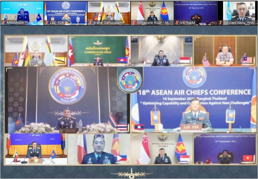 ထိုင်းနိုင်ငံတွင် လက်ခံကျင်းပသည့် (၁၈)ကြိမ်မြောက် အာဆီယံလေတပ်ဦးစီးချုပ်များ အစည်းအဝေး 18th ASEAN Air Chiefs Conference ကို ထိုင်းနိုင်ငံတွင် Video Tele-Conference - VTC ဖြင့် ယနေ့နံနက်ပိုင်းတွင် ကျင်းပပြုလုပ်သည်။