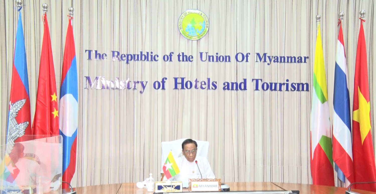 မဲခေါင်ခရီးသွားလုပ်ငန်းညှိနှိုင်းရေးမှူးရုံး ဘုတ်အဖွဲ့အစည်းအဝေးတွင် ပြည်ထောင်စုဝန်ကြီး က နှုတ်ခွန်ဆက် စကားပြောကြားပြီး ကိုဗစ်အလွန် မြန်မာနိုင်ငံ ခရီးသွားကဏ္ဍပြန်လည် ထူထောင်ရေး မဟာဗျူဟာလမ်းပြမြေပုံ (၂၀၂၁−၂၀၂၅)၊ “စွဲမက်ဖွယ်ရာ ပြည်မြန်မာ ကျန်းမာရေး နှင့် ဘေးအန္တရာယ် ကင်းရှင်းရေးလုပ်ထုံးလုပ်နည်း အစီအစဉ်ထုတ်ပြန် ကြေညာမှုအခြေအနေ များ၊ မြန်မာနိုင်ငံ၏ နိုင်ငံရေး၊ စီးပွားရေး၊ လူမှုရေး လက်ရှိဖြစ်ပေါ် တိုးတက်မှု အခြေအနေများနှင့်  ခရီးသွားလုပ်ငန်းဆိုင်ရာ အခွင့်အလမ်းအခြေအနေများနှင့် မြန်မာနိုင်ငံနှင့် အဖွဲ့ဝင်နိုင်ငံများအကြား ခရီးသွားလုပ်ငန်းဆိုင်ရာ ပူးပေါင်းဆောင်ရွက်မှု အလားအလာကောင်းများကို ရှင်းလင်းပြောကြား သည်။