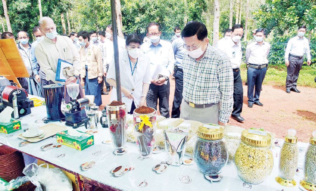 ဆွေးနွေးတင်ပြမှုများအပေါ် နိုင်ငံတော်စီမံအုပ်ချုပ်ရေးကောင်စီ ဥက္ကဋ္ဌ၊ နိုင်ငံတော်ဝန်ကြီးချုပ်က မိမိတို့နိုင်ငံ၌ ကော်ဖီစိုက်ဧက ၃ သောင်းကျော်ရှိပြီး ဒေသ အလိုက်ခွဲ၍ Robusta နှင့် Arabica ကော်ဖီမျိုးတို့ကို စိုက်ပျိုးသည်ဟု သိရှိရ ကြောင်း၊ ကော်ဖီစိုက်ပျိုးခြင်းလုပ်ငန်းသည် အရင်းအနှီးများပြီး ကာလရှည်လုပ်ငန်း ဖြစ်သည့်အတွက် အောင်မြင်အောင် လုပ်ဆောင်ရမည်ဖြစ်ပြီး ပြည်တွင်း၊ ပြည်ပ ဈေးကွက်များကို အမြဲမပြတ်လေ့လာနေရန်လိုကြောင်း၊ အထွက်နှုန်းကောင်း မွန်ရန်၊ Quality Product ဖြစ်ရန်၊ ဈေးကွက်ရရှိရန် လိုအပ်မည်ဖြစ်ကြောင်း၊ အနံ့၊ အရသာနှင့် အရောင် ကောင်းမွန်ရမည်ဖြစ်ပြီး ဈေးကွက်လိုအပ်ချက်နှင့် ဒေသ အလိုက် ကြိုက်နှစ်သက်သည့် အမျိုးအစားများကို လေ့လာဆန်းစစ်၍ ခွဲခြားဖြန့်ချိ ရန်လိုကြောင်း၊ လုပ်ငန်းတစ်ခုဆောင်ရွက်ရာတွင် သုတေသနနှင့် ဖွံ့ဖြိုးမှု Research and Development ရှိရမည်ဖြစ်ပြီး သုတေသနလုပ်ငန်းများကို မဖြစ်မနေလုပ် ဆောင်ရန်လိုကြောင်း၊ ပထမအဆင့်အနေဖြင့် ကုန်ကြမ်းများကို တင်ပို့ရောင်းချပြီး ဒုတိယအဆင့်အနေဖြင့် ကုန်ချောများကို ထုတ်လုပ်ကာ အရည်အသွေးမြင့်ကုန်ချော ထုတ်ကုန်များကို ပြည်ပသို့ တင်ပို့ရောင်းချနိုင်ရေး စဉ်းစားဆောင် ရွက်ရန်လို ကြောင်း၊ မျိုးကောင်းမျိုးသန့်ရရှိရေး၊ နည်းစနစ်ကျနရေး၊ ဈေးကွက်ရရှိ ရေးနှင့် အရင်းအနှီး လိုအပ်ချက်တို့အတွက် နိုင်ငံတော်မှကူညီ ဆောင်ရွက်ပေးမည်ဖြစ် သဖြင့် လုပ်ငန်းရှင်များ အနေဖြင့် အရည်အသွေးမြင့်သည့် ကော်ဖီထုတ်ကုန်များရရှိရေး ကြိုးပမ်းဆောင် ရွက်ကြစေလိုကြောင်း၊ နောင်တွင် လုပ်ငန်းရှင်များ ကိုယ်တိုင်သုတေသနပြု၊ မျိုးကောင်းမျိုးသန့်ထုတ်လုပ်ခြင်းနှင့ ်ဈေးကွက်မြှင့်တင်ရေး ဆောင်ရွက်ရမည်ဖြစ်ကြောင်း၊ ကမ္ဘာ့ကော်ဖီဈေး ကွက်တွင် မြန့်မာကော်ဖီသည် အဆင့်အတန်းရှိရှိဖြင့် နေရာတစ်ခုတွင် ခိုင်ခိုင်မာမာ ရပ်တည် နိုင်ရေး ရည်မှန်းချက်ထား လုပ်ဆောင်ရမည်ဖြစ်ကြောင်း။
