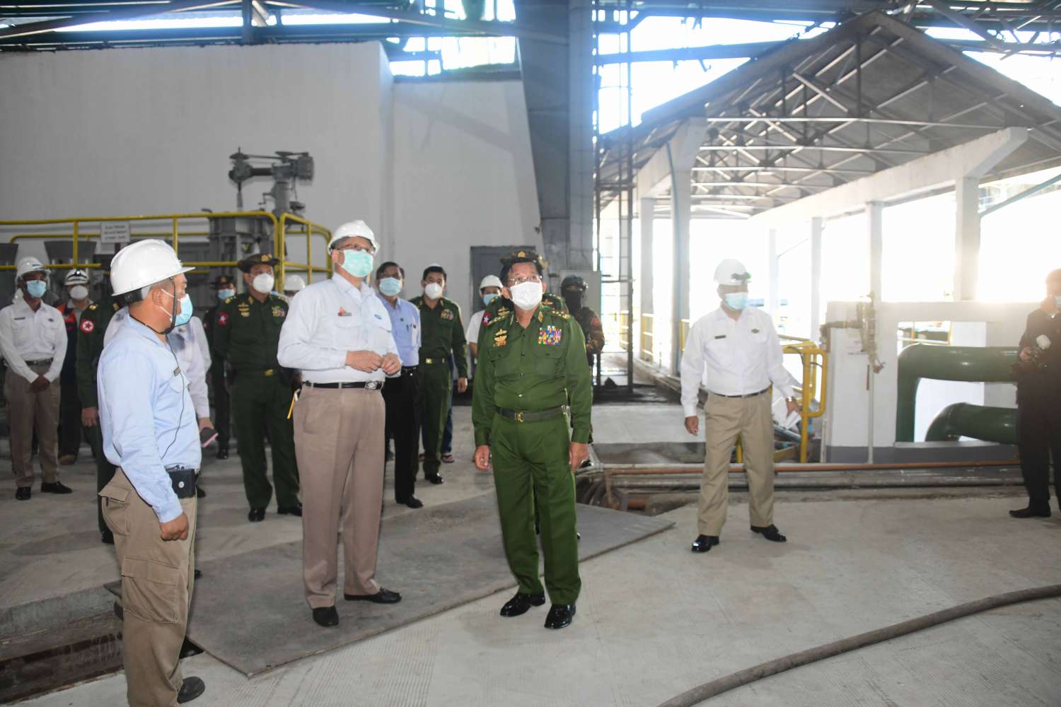 ထို့နောက် နိုင်ငံတော်စီမံအုပ်ချုပ်ရေးကောင်စီဥက္ကဋ္ဌ နိုင်ငံတော်ဝန်ကြီးချုပ် နှင့် အဖွဲ့ဝင်များသည် စက်ရုံအတွင်း Revamping လုပ်ငန်းဆောင်ရွက်နေမှု အခြေအနေ များအား လှည့်လည်ကြည့်ရှုစစ်ဆေးပြီး တာဝန်ရှိသူများ၏ တင်ပြချက်များအပေါ် လိုအပ်သည်များ လမ်းညွှန်မှာကြားခဲ့သည်။