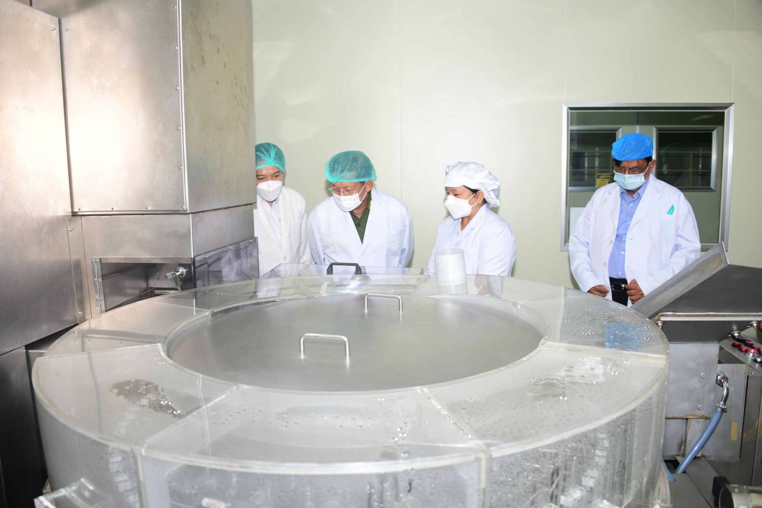 ယင်းနောက်နိုင်ငံတော်စီမံအုပ်ချုပ်ရေးကောင်စီဥက္ကဋ္ဌ နိုင်ငံတော်ဝန်ကြီးချုပ် နှင့်အဖွဲ့ဝင်များသည် ဆေးဝါးစက်ရုံအတွင်း ဆေးဝါးထုတ်လုပ်မှုအဆင့်ဆင့်ကို လှည့်လည် ကြည့်ရှုကြရာ တာဝန်ရှိသူများက လိုက်လံရှင်းလင်းပြသခဲ့ကြသည်။
