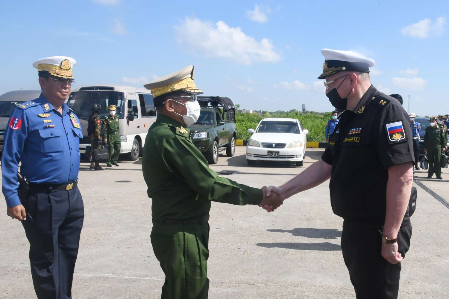 ဆက်လက်ပြီး နိုင်ငံတော်စီမံအုပ်ချုပ်ရေးကောင်စီဥက္ကဋ္ဌ၊ တပ်မတော် ကာကွယ်ရေး ဦးစီးချူပ် သည် ရုရှားဖက်ဒရေးရှင်းနိုင်ငံ၊ ဒုတိယရေတပ်ဦးစီးချုပ် ဦးဆောင်သည့် အဖွဲ့ဝင်များအား ရုရှားစစ်ရေယာဉ် Gremyashiy ပေါ်ရှိ အစည်းအဝေးခန်းမတွင် လက်ခံတွေ့ဆုံသည်။