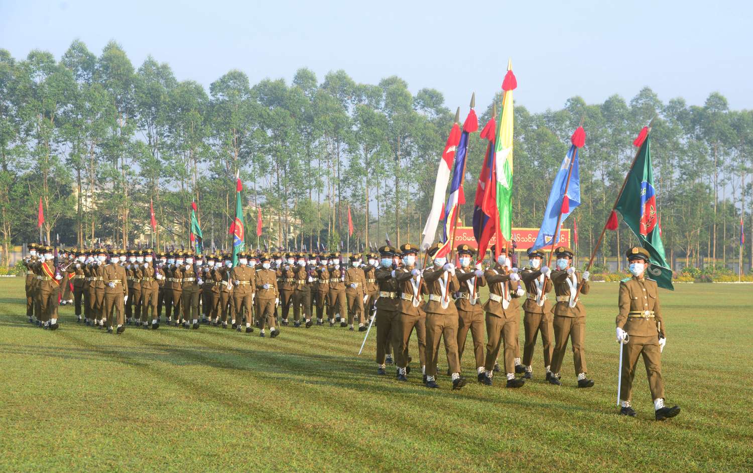 ယင်းနောက် နိုင်ငံတော်စီမံအုပ်ချုပ်ရေးကောင်စီဥက္ကဋ္ဌ၊ တပ်မတော်ကာကွယ်ရေးဦးစီးချုပ် ဗိုလ်ချုပ်မှူးကြီး မဟာသရေစည်သူ မင်းအောင်လှိုင်သည် ဗိုလ်လောင်းတပ်ခွဲများ၏ အလေးပြုခြင်းကို ခံယူပြီးနောက် စစ်ရေးပြအခမ်းအနားမှ ပြန်လည်ထွက်ခွာသည်။