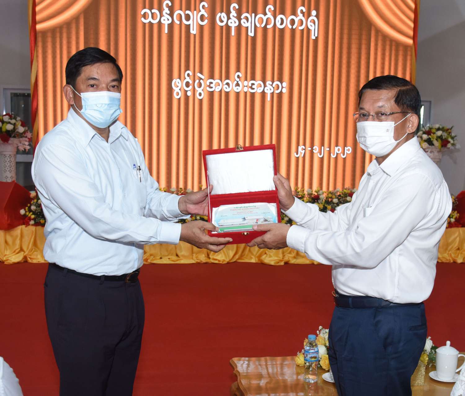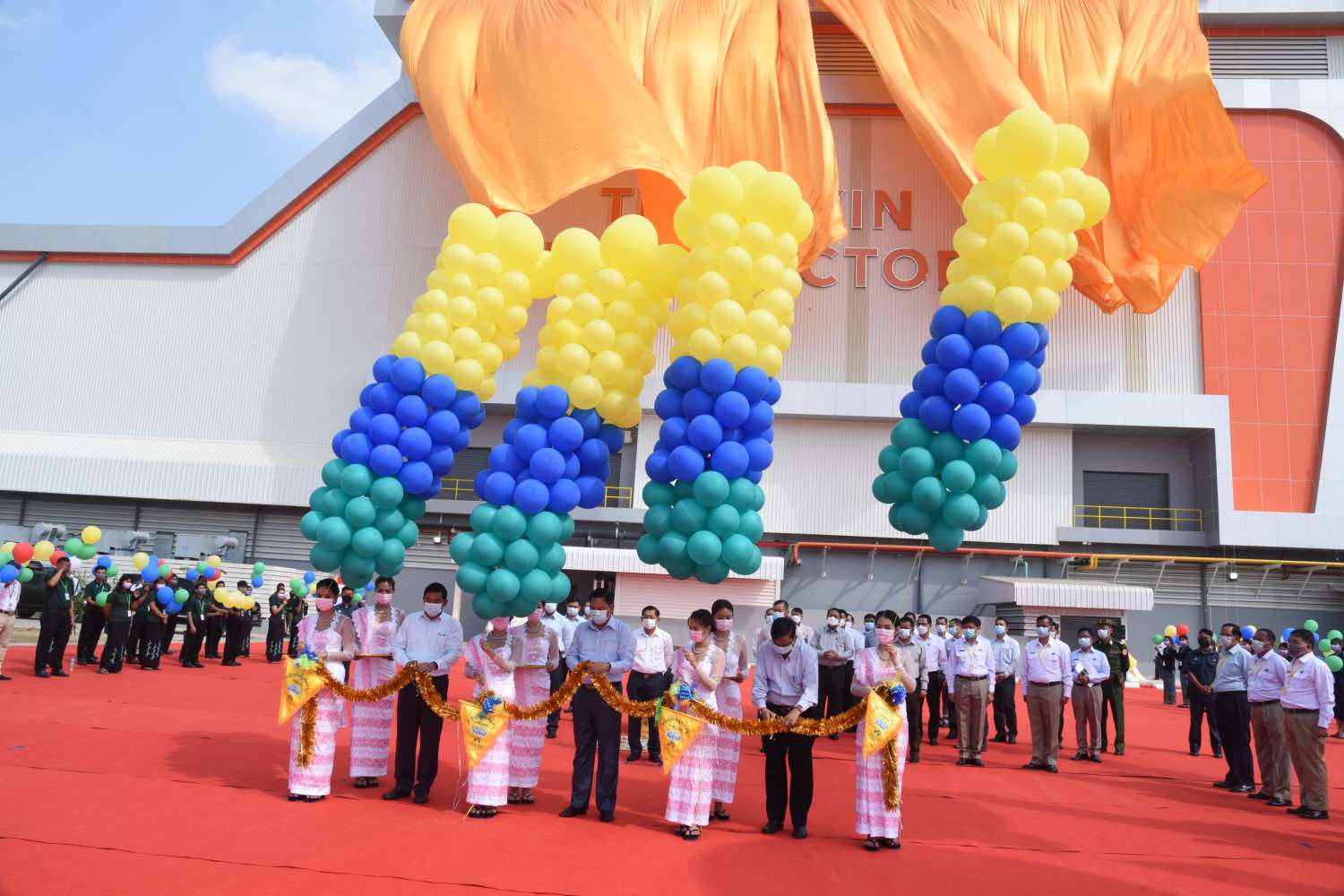 နိုင်ငံတော်စီမံအုပ်ချုပ်ရေးကောင်စီဥက္ကဋ္ဌ နိုင်ငံတော်ဝန်ကြီးချုပ် ဗိုလ်ချုပ်မှူးကြီး မင်းအောင်လှိုင် သန်လျင်ဖန်ချက်စက်ရုံ အဆင့်မြှင့်တင်ဖွင့်လှစ်ခြင်း အခမ်းအနားသို့ တက်ရောက်ဖွင့်လှစ်