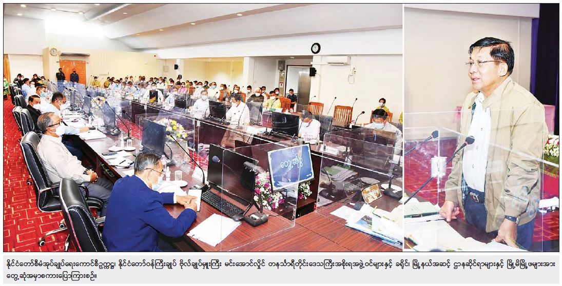 တနင်္သာရီတိုင်းဒေသကြီးအတွင်း လမ်းပန်းဆက်သွယ်မှုများ ကောင်းမွန်ရေးအတွက် လမ်းနှင့် တံတားများကို အဆင့်မြှင့်တင်ဆောင်ရွက်ပေးလျက်ရှိသည့် အခြေအနေများနှင့် ကျေးလက် လမ်းတံတားများကို ဦးစားပေးအနေဖြင့် ဆောင်ရွက်ပေးလျက်ရှိသည့် အခြေအနေများ၊ ကိုဗစ်-၁၉ ရောဂါ တတိယလှိုင်း ကာလအတွင်း တနင်္သာရီတိုင်းဒေသကြီးအနေဖြင့် ရောဂါ ကူးစက် ဖြစ်ပေါ်ခဲ့မှု အခြေအနေများနှင့် လက်ရှိအချိန်တွင် တစ်နိုင်ငံလုံးအတိုင်းအတာဖြင့် ရောဂါပိုး အတည်ပြုလူနာ တွေ့ရှိမှုနှုန်းကို လျှော့ချနိုင်ခဲ့ပြီးဖြစ်သည့် အခြေအနေများ၊ ကိုဗစ်-၁၉ ရောဂါ စတုတ္ထလှိုင်းဖြစ်ပေါ်မှုကို ကြိုတင်ကာကွယ်နိုင်ရေးအတွက် တစ်နိုင်ငံလုံး အတိုင်းအတာဖြင့် ကာကွယ်ဆေးထိုး လုပ်ငန်းများကို အင်တိုက်အားတိုက် ဆောင်ရွက်လျက်ရှိပြီး တနင်္သာရီ တိုင်းဒေသကြီးအတွင်း ကာကွယ်ဆေးထိုးနှံပြီးစီးမှု အခြေအနေများနှင့် ပတ်သက်၍ ရှင်းလင်းပြောကြားကြသည်။