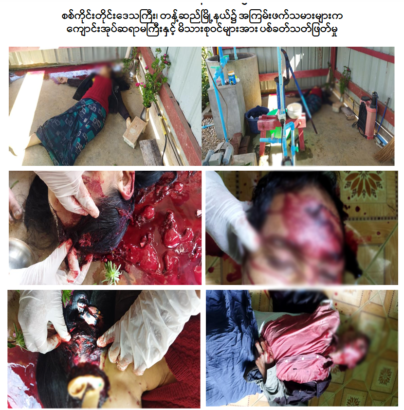 ထိုကဲ့သို့ ဆရာ၊ ဆရာများအား အကြမ်းဖက်ခြိမ်းခြောက်ခြင်း၊ ရက်စက်စွာသတ်ဖြတ်ခြင်း များပြုလုပ်ခဲ့ရာတွင် ဇန်နဝါရီလ ၁၉ ရက်နေ့ မွန်းလွဲ ၁၂ နာရီ အချိန်တွင် စစ်ကိုင်းတိုင်း ဒေသကြီး၊ တန့်ဆည်မြို့နယ်၊ မေတ္တာမြိုင်ရပ်ကွက်နေ ဦးဆင်ကျော်(၅၃)နှစ် (ဘ)ဦးပြောင်း၊ ဇနီးဖြစ်သူ ဒယ်ရောက်အခြေခံပညာ မူလတန်းကျောင်းမှ ကျောင်းအုပ်ဆရာမကြီးဖြစ်သူ ဒေါ်သန်းသန်းနွဲ့ (၅၀)နှစ် (ဘ)ဦးစိန်မောင်နှင့် သမီးဖြစ်သူ မလင်းလက်ကျော်(၂၀)နှစ်တို့ မိသားစုသည် ၎င်းတို့၏ နေအိမ်၌ ရှိနေစဉ် အနက်ရောင်ဝတ်စုံများ ဝတ်ဆင်ထားပြီး သေနတ်များကိုယ်စီကိုင်ဆောင်ထား သည့် အကြမ်းဖက်သူ အမျိုးသား ၄ ဦး ရောက်ရှိလာပြီး နေအိမ်အတွင်းသို့ ဝင်ရောက်ကာ သေနတ်များဖြင့် ရက်စက်စွာ ဝိုင်းဝန်းပစ်ခတ်သတ်ဖြတ် ခဲ့သဖြင့် ဦးဆင်ကျော်နှင့် ကျောင်းအုပ် ဆရာမကြီး ဒေါ်သန်းသန်းနွဲ့တို့တွင် သေနတ်ထိမှန် ဒဏ်ရာများရရှိ၍ အခင်းဖြစ်နေရာ၌ သေဆုံး သွားခဲ့ကြပြီး သမီးဖြစ်သူ မလင်းလက်ကျော်တွင် ယာလက်ဖျံ ကျည်ဖောက်ဝင်ဒဏ်ရာ ၁ ချက် ရရှိခဲ့သဖြင့် ဆေးဝါးကုသနိုင်ရေး တန့်ဆည် မြို့ပြည်သူ့ဆေးရုံသို့ ပို့ဆောင်ထားရှိကာ အခင်းဖြစ် နေရာမှ အကြမ်းဖက် သမားများ ပစ်ခတ်ခဲ့သည့် A USA 320 AUTO ကျည်ခွံ ၁ ခုနှင့် MM 6 NRO LUSER ကျည်ခွံ ၁ ခုတို့အား တွေ့ရှိသိမ်းဆည်းရမိခဲ့ကြောင်း သိရသည်။