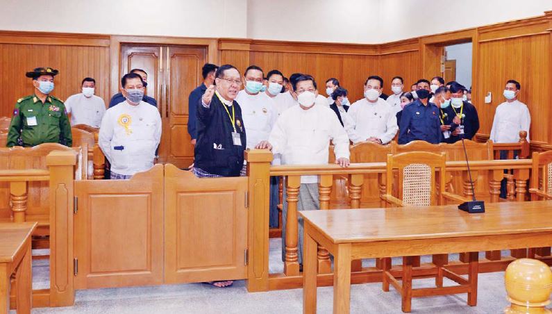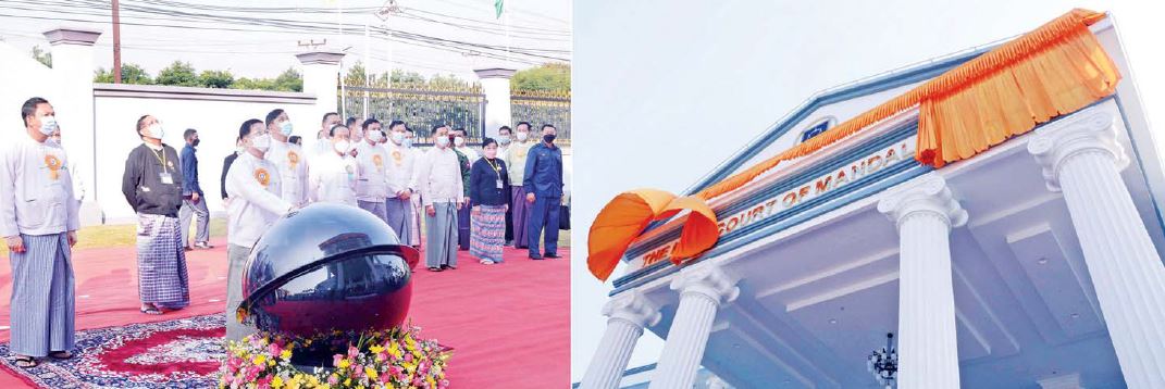 မန္တလေးတိုင်းဒေသကြီး၊ ဥပဒေချုပ်ရုံးနှင့် တရားလွှတ်တော်အဆောက်အဦ ဖွင့်ပွဲအခမ်းအနားများကို ယနေ့နံနက်ပိုင်းတွင် ချမ်းမြသာစည်မြို့နယ်ရှိ၊ အဆိုပါရုံး နေရာများ၌ သီးခြားစီကျင်းပပြုလုပ်ရာ နိုင်ငံတော်စီမံအုပ်ချုပ်ရေးကောင်စီဥက္ကဋ္ဌ၊ နိုင်ငံတော်ဝန်ကြီးချုပ် ဗိုလ်ချုပ်မှူးကြီး မင်းအောင်လှိုင် တက်ရောက်ချီးမြှင့်သည်။