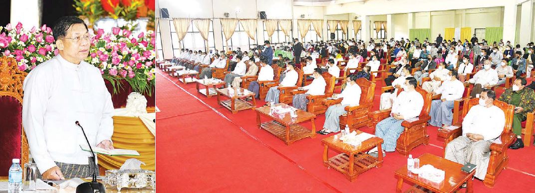 ထို့နောက် နိုင်ငံတော်စီမံအုပ်ချုပ်ရေးကောင်စီဥက္ကဋ္ဌ နိုင်ငံတော်ဝန်ကြီးချုပ်က ဒေသဖွံ့ဖြိုးတိုး တက်ရေးဆိုင်ရာများနှင့် ပတ်သက်၍ ပြောကြားရာ၌ မိမိအနေဖြင့် ယခုကဲ့သို့ နိုင်ငံတော်အဆင့် တာဝန်ရှိသူများနှင့်အတူ လာရောက်ခြင်းသည် ဒေသဖွံ့ဖြိုးတိုးတက်ရေးအတွက် လိုအပ်သည် များကို မှန်မှန်ကန်ကန်နှင့် မြန်ဆန်စွာ ဖြည့်ဆည်းပေးရေး လာရောက်ခြင်းဖြစ် သည့်အတွက် ဒေသ၏ ယေဘူယျ အခြေအနေ နှင့် ဒေသ၏လိုအပ်ချက်များကို အချိန်တိုအတွင်း ထိထိရောက်ရောက် တင်ပြကြရန် လိုကြောင်း၊ ဒေသအတွင်း လာရောက်တာဝန်များကို ထမ်းဆောင်နေကြသည့် ဌာနဆိုင်ရာဝန်ထမ်းများ၊ နယ်မြေခံတပ်များနှင့် ဒေသခံပြည်သူလူထုတို့ လက်တွဲညီညီ ဆောင်ရွက်ပြီးဒေသနှင့် ဒေသခံပြည်သူလူထု၏ လူမှုစီးပွားဘဝဖွံ့ဖြိုး တိုးတက်စေရေး ဝိုင်းဝန်းပူးပေါင်း ဆောင်ရွက်ပေးနိုင်ရမည်ဖြစ်ကြောင်း၊ နိုင်ငံတော်အစိုးရ အနေဖြင့် ဒေသဖွံ့ဖြိုးတိုးတက်ရေးဆိုင်ရာ လိုအပ်ချက်များကို တတ်စွမ်းသရွေ့အမြန်ဆုံး ဖြည့်ဆည်း ဆောင်ရွက်ပေးသွားမည်ဖြစ်ကြောင်း။