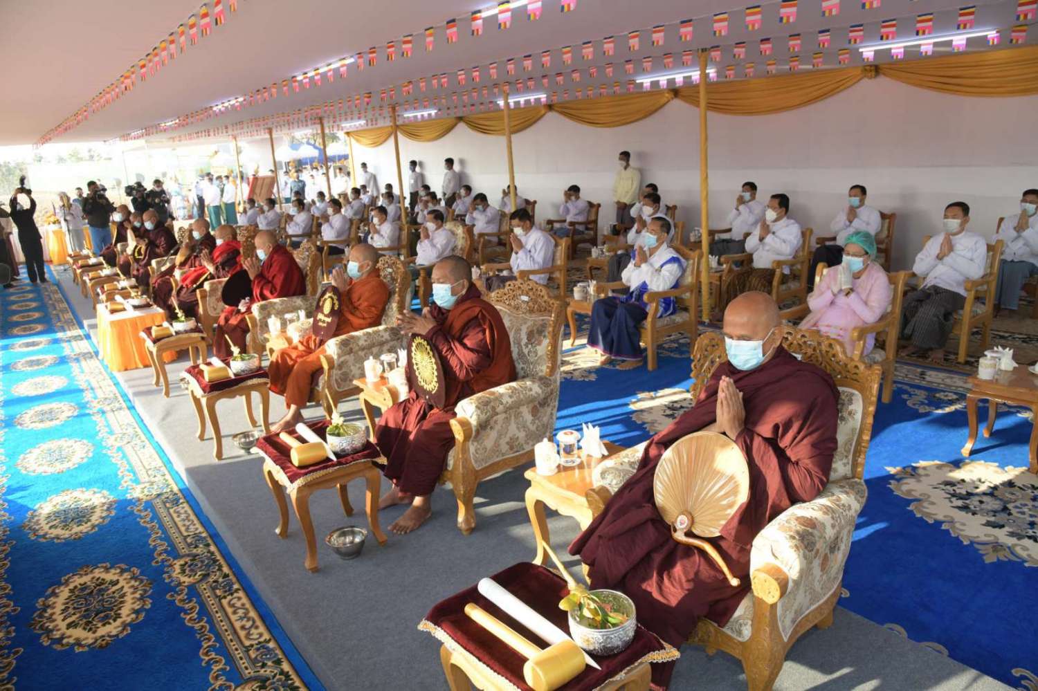 ဦးစွာ အခမ်းအနားကို နမောတဿသုံးကြိမ်ရွတ်ဆို ဘုရားကန်တော့ဖွင့်လှစ်ပြီး ဆရာတော်ကြီးများက မေတ္တာပို့ဂါထာတော်များ ရွတ်ဆိုပူဇော်ကြသည်။ ထို့နောက် နိုင်ငံတော်စီမံအုပ်ချုပ်ရေးကောင်စီဥက္ကဋ္ဌ နိုင်ငံတော်ဝန်ကြီးချုပ်နှင့် အခမ်းအနားတက်ရောက် လာကြသူများက ရတနတ္တယပူဇာဂါထာတော်နှင့် မေတ္တာပို့ လင်္ကာနှစ်ပိုဒ်ကို သံပြိုင်ညီညာ သုံးကြိမ်ရွတ်ဆိုပွားများပူဇော်ကြသည်။